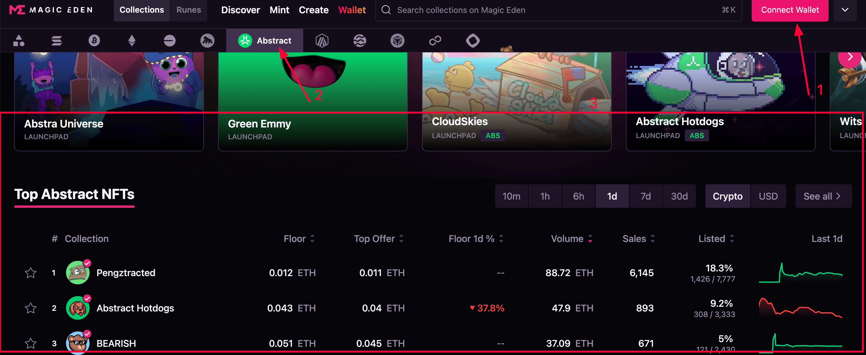 2. Bay vô trang web Abstract và kết nối ví của bạn với các khoản tiền trên mạng Abstract:
