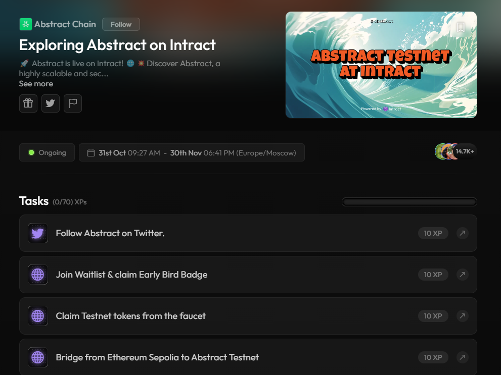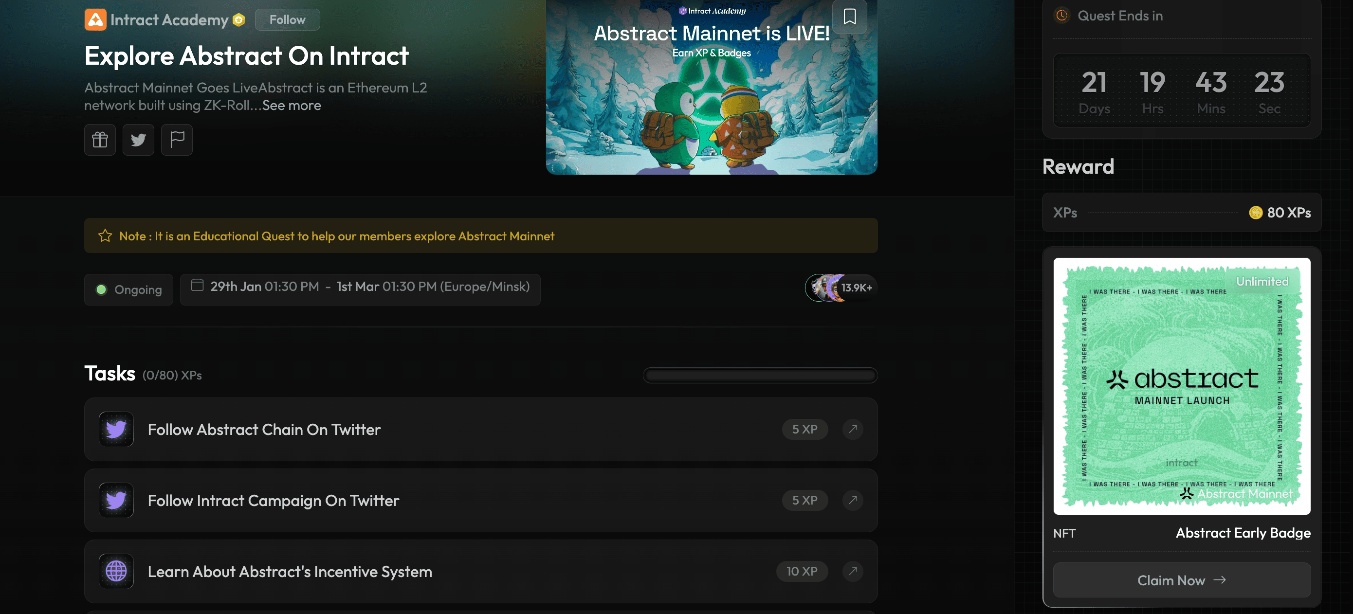 Another campaign related to Abstract Mainnet has been added to Intract. We can get Abstract Early Badge NFT by completing simple tasks.