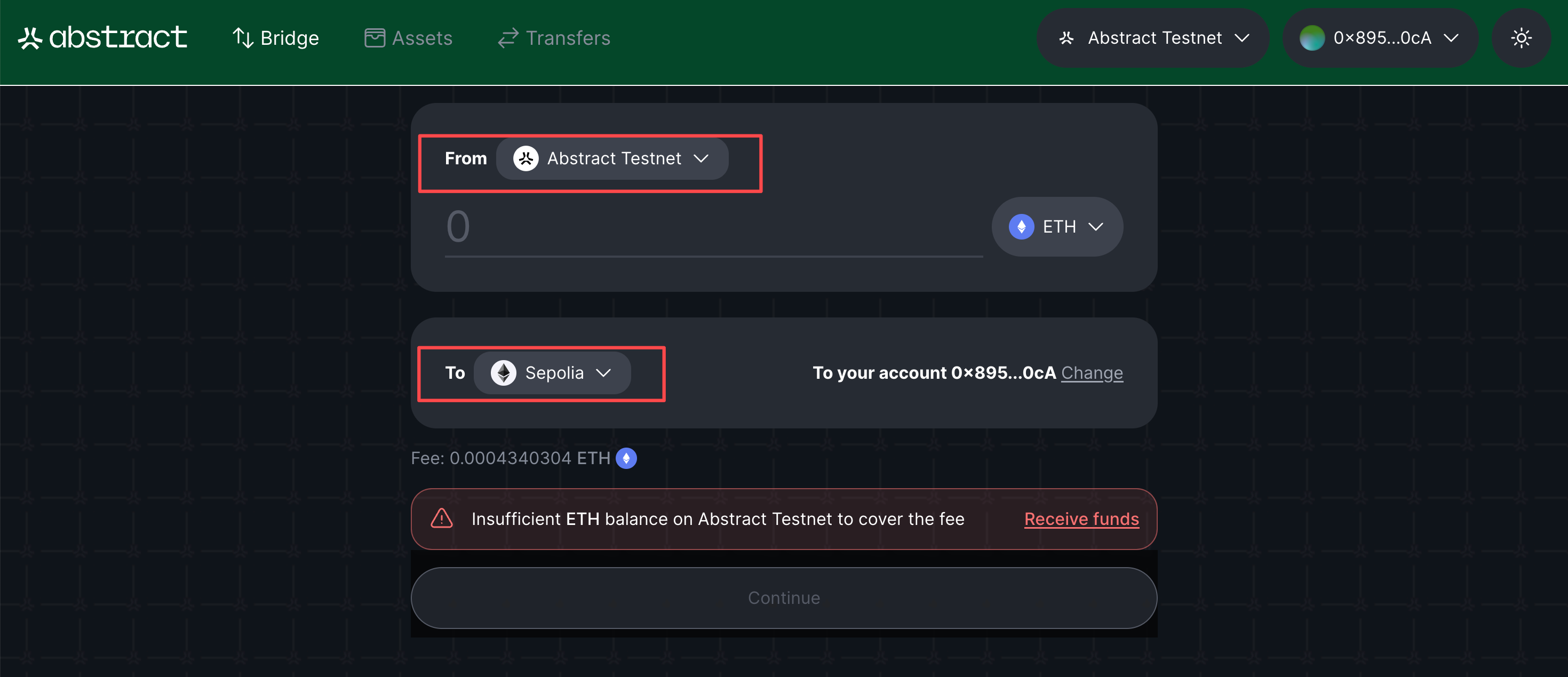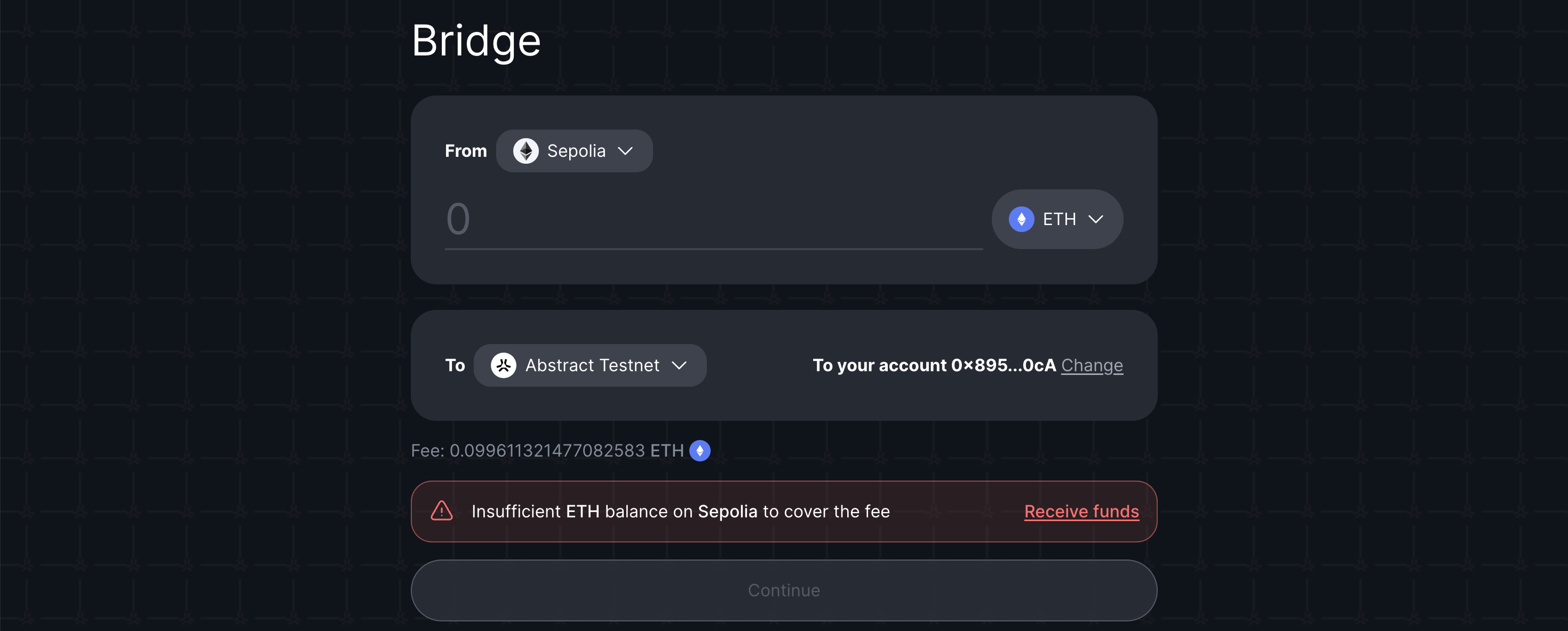 3. Bridge the tokens from the Sepolia test network to the Abstract network: