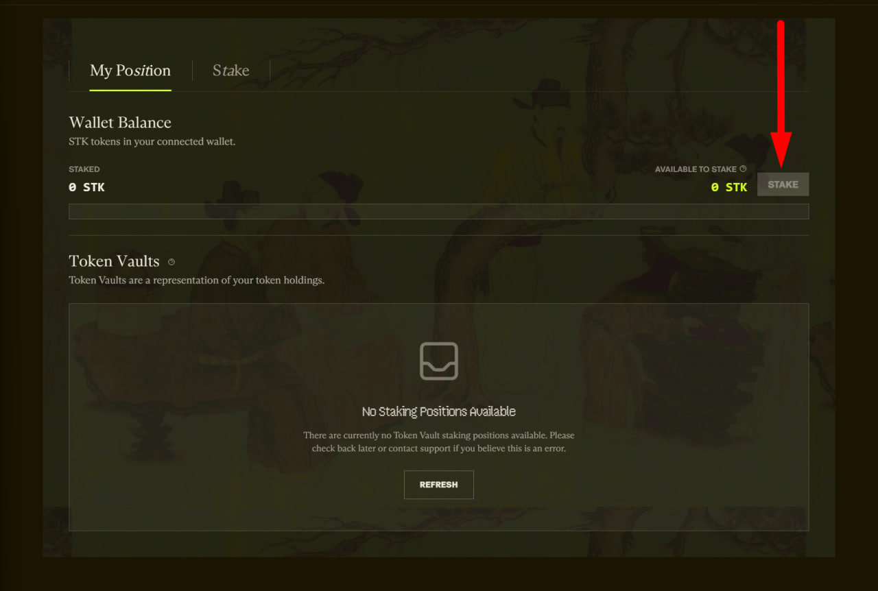 2. On the staking website, connect your wallet and click on the "Stake" button, then send your preferred amount of test tokens to staking.