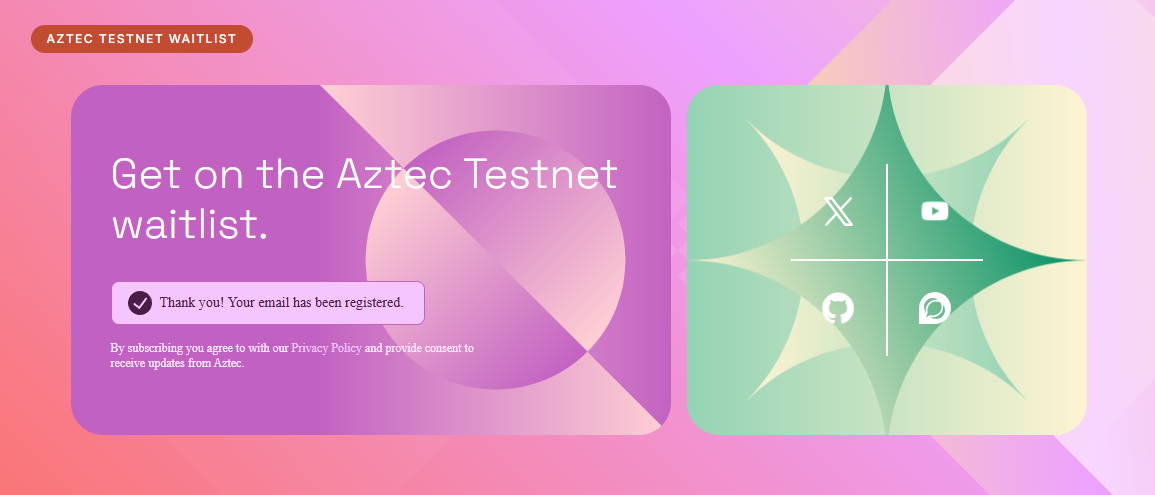 The Aztec team has opened the waitlist for testnet access. You can fill it out to become an early participant.