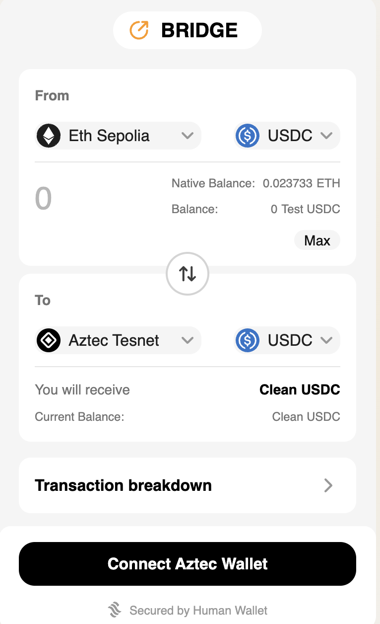 3. Cầu nối token USDC đến mạng Aztec (bạn có thể yêu cầu chúng tại đây):