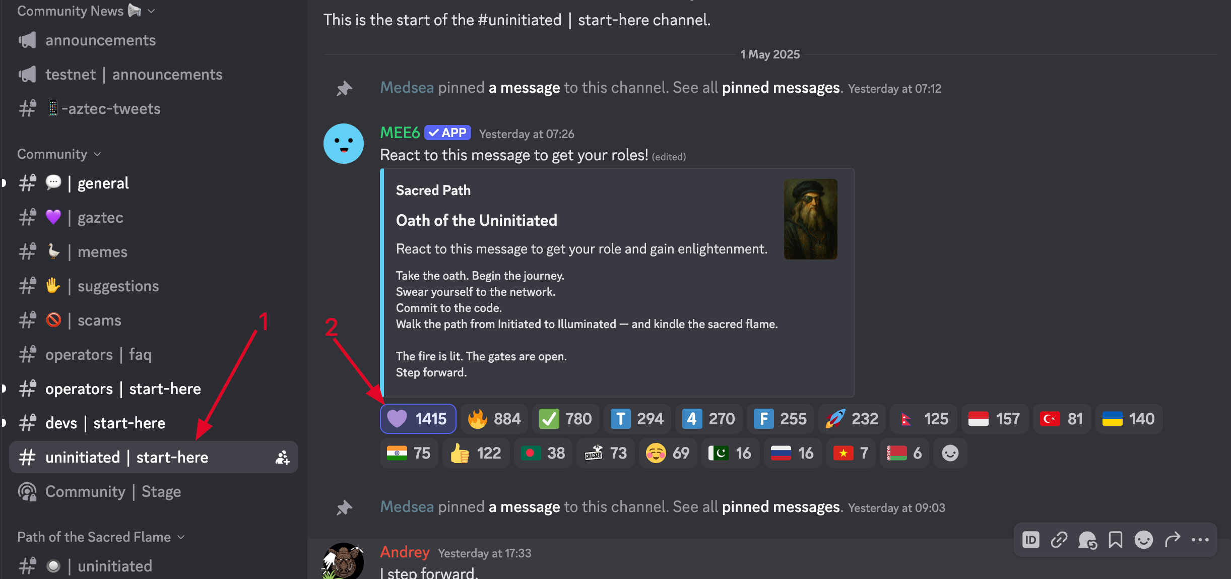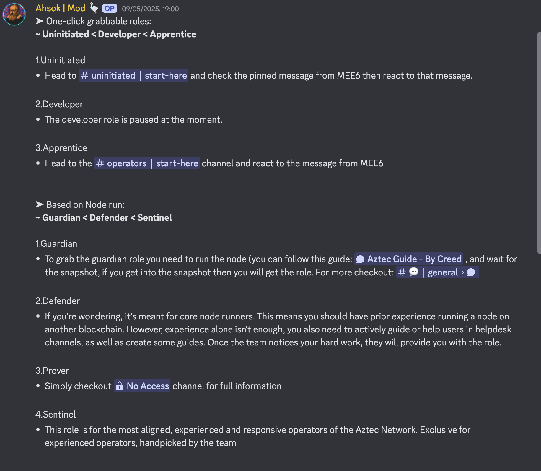 Trong dự án Discord, chúng ta có thể nhận được vai trò "Apprentice" để chạy và xác minh Node.