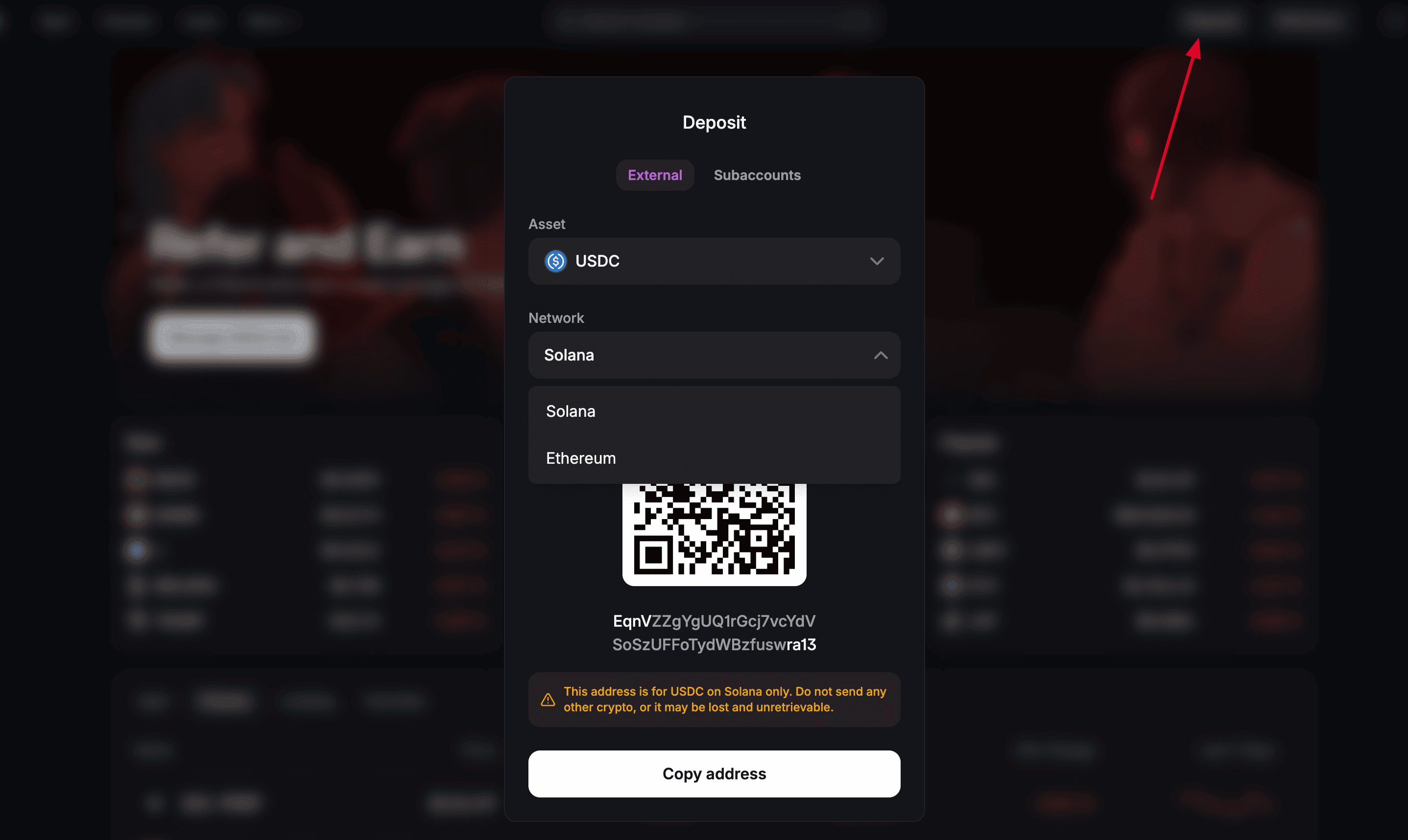 1. Install the Backpack Wallet and make a deposit of any amount.