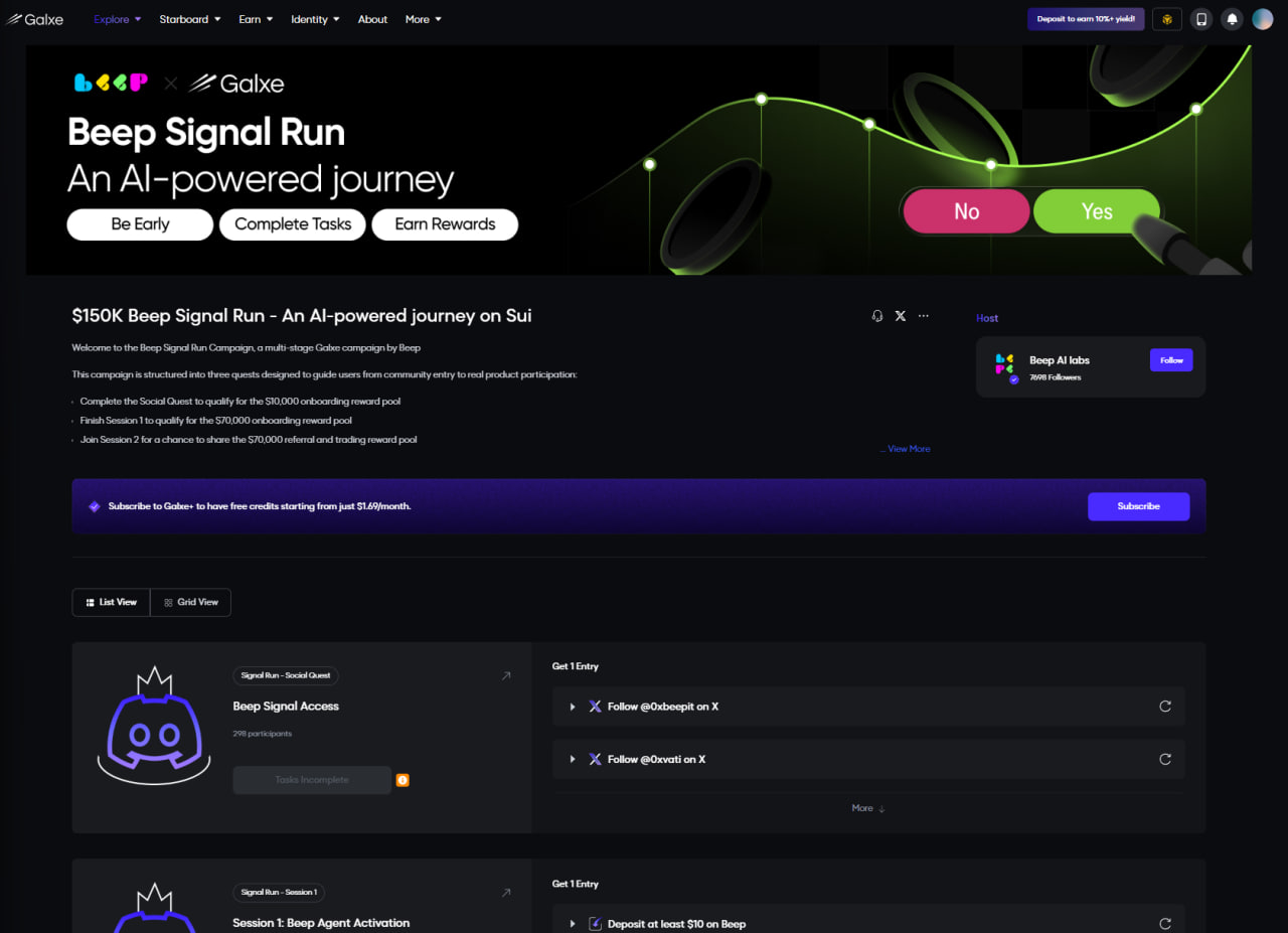 Galxe: Beep Signal Run. $150,000 Prize Pool