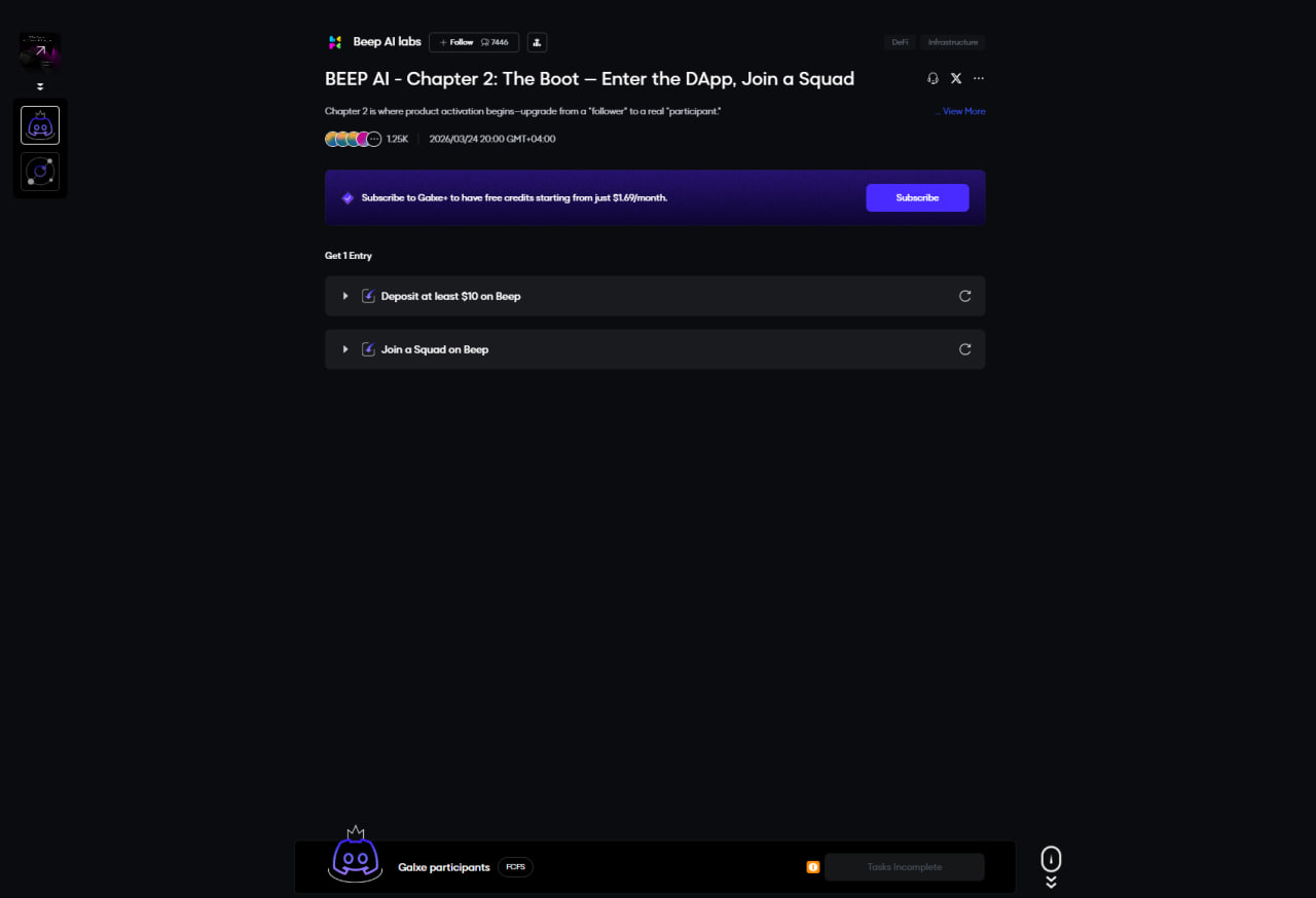 Beep has announced the launch of the second phase of the BEEP AI Odyssey campaign. You can make a deposit of $10 or more and join the team to become a Galxe participant on Discord