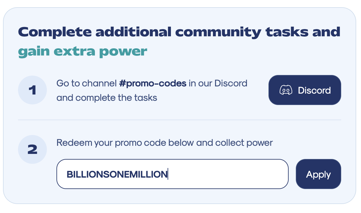 1. Enter the code BILLIONSONEMILLION in the dashboard to earn 400 points: