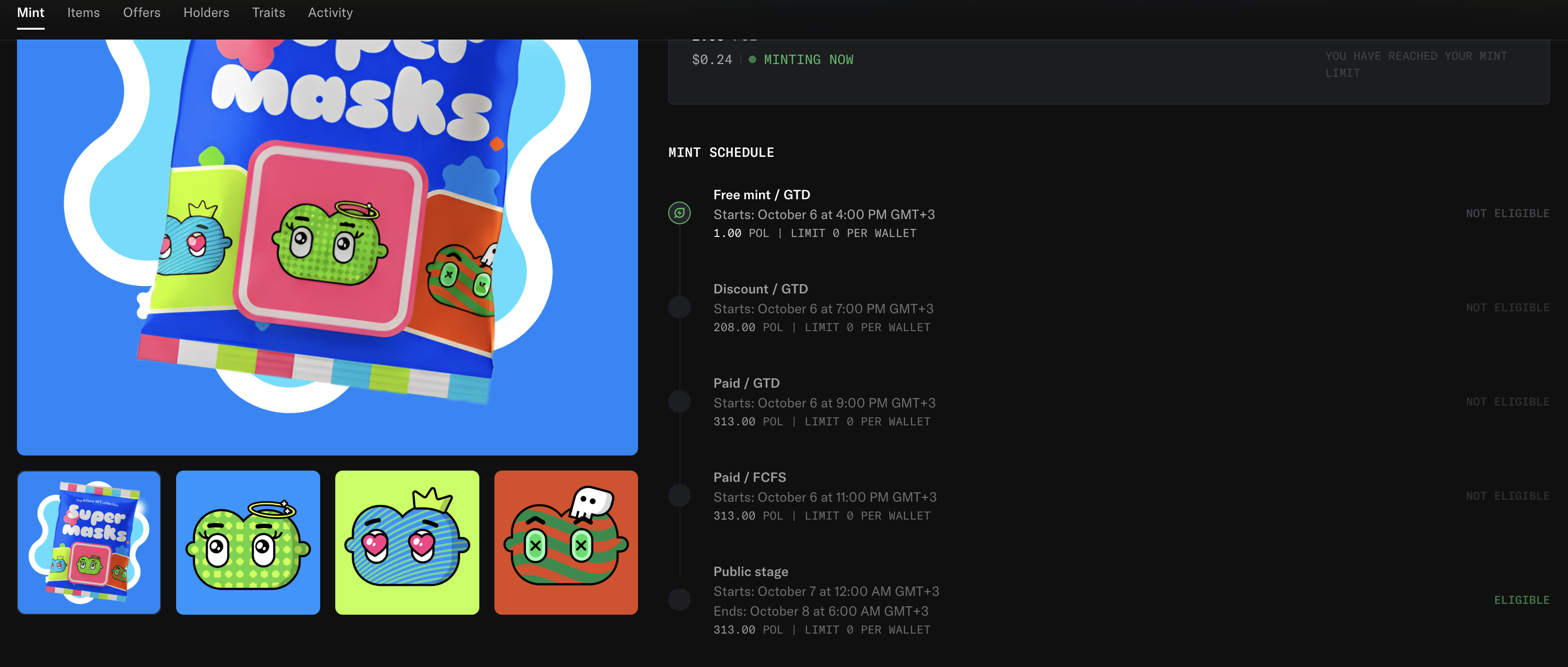 Billions has launched a new NFT collection mint on OpenSea! Minting is divided into several phases. Discounted price: 213 POL. Full price: 313 POL.