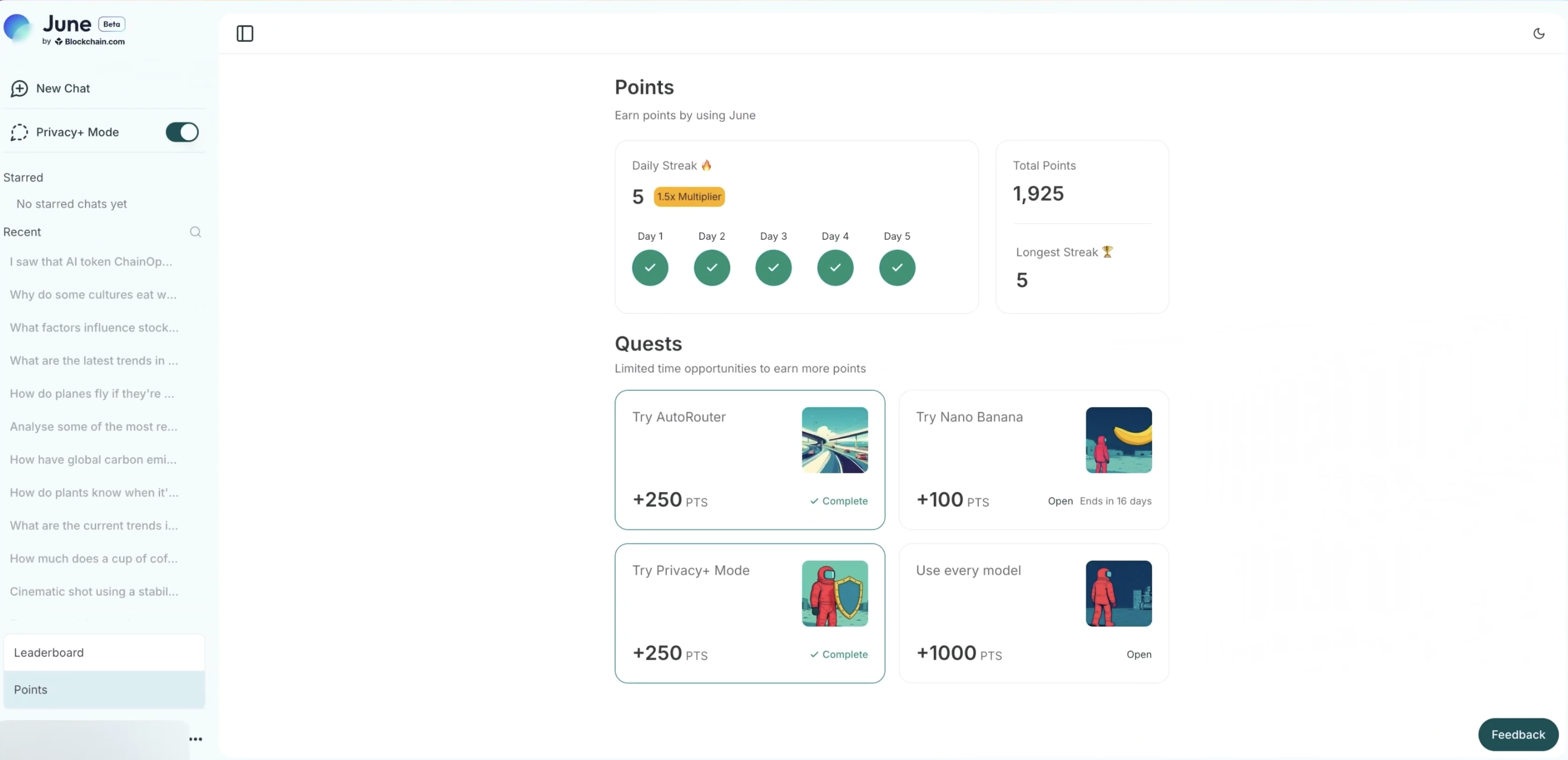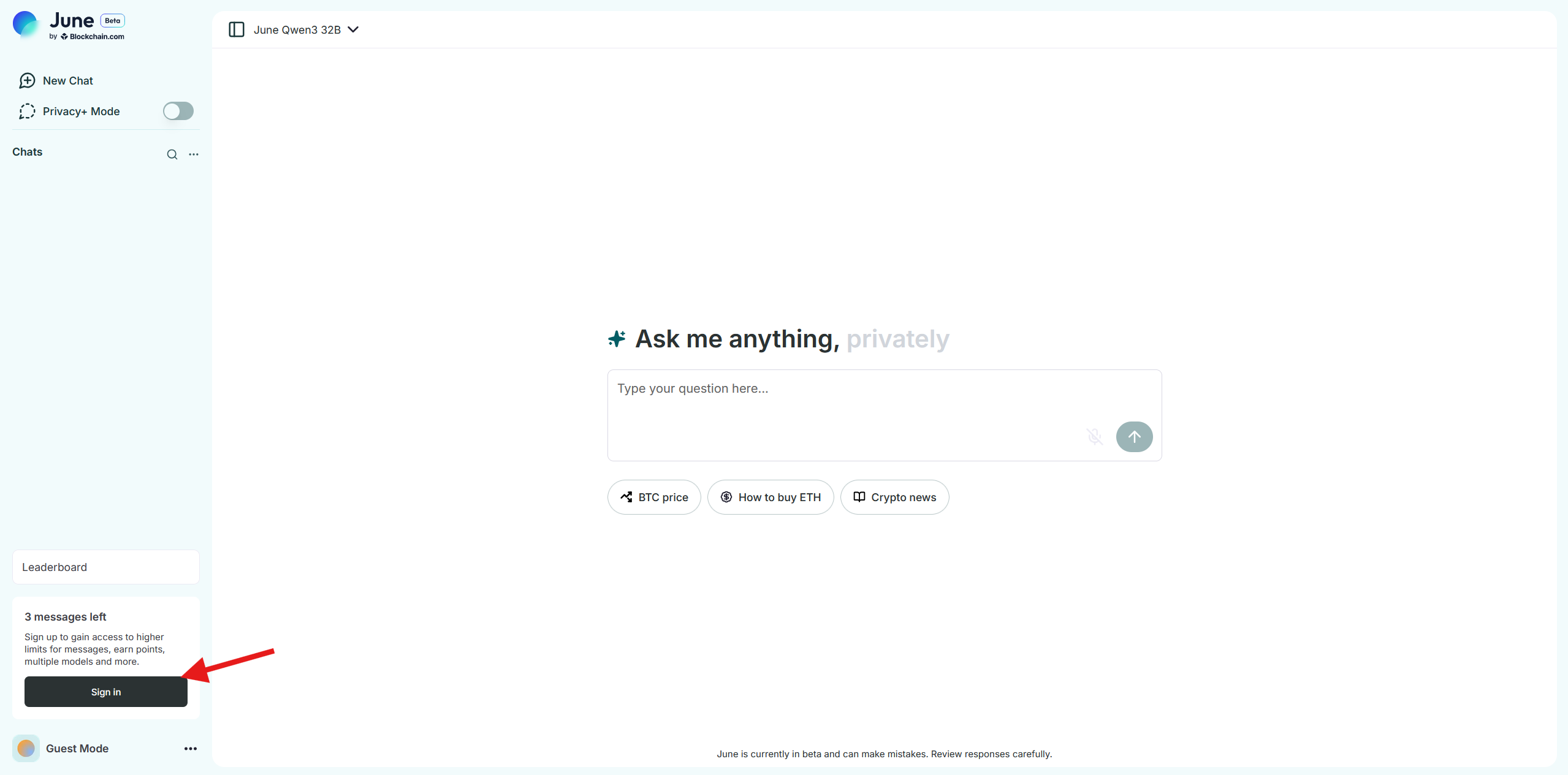 Blockchain.com has announced the beta version of June AI. You can interact with AI and invite friends to earn points.