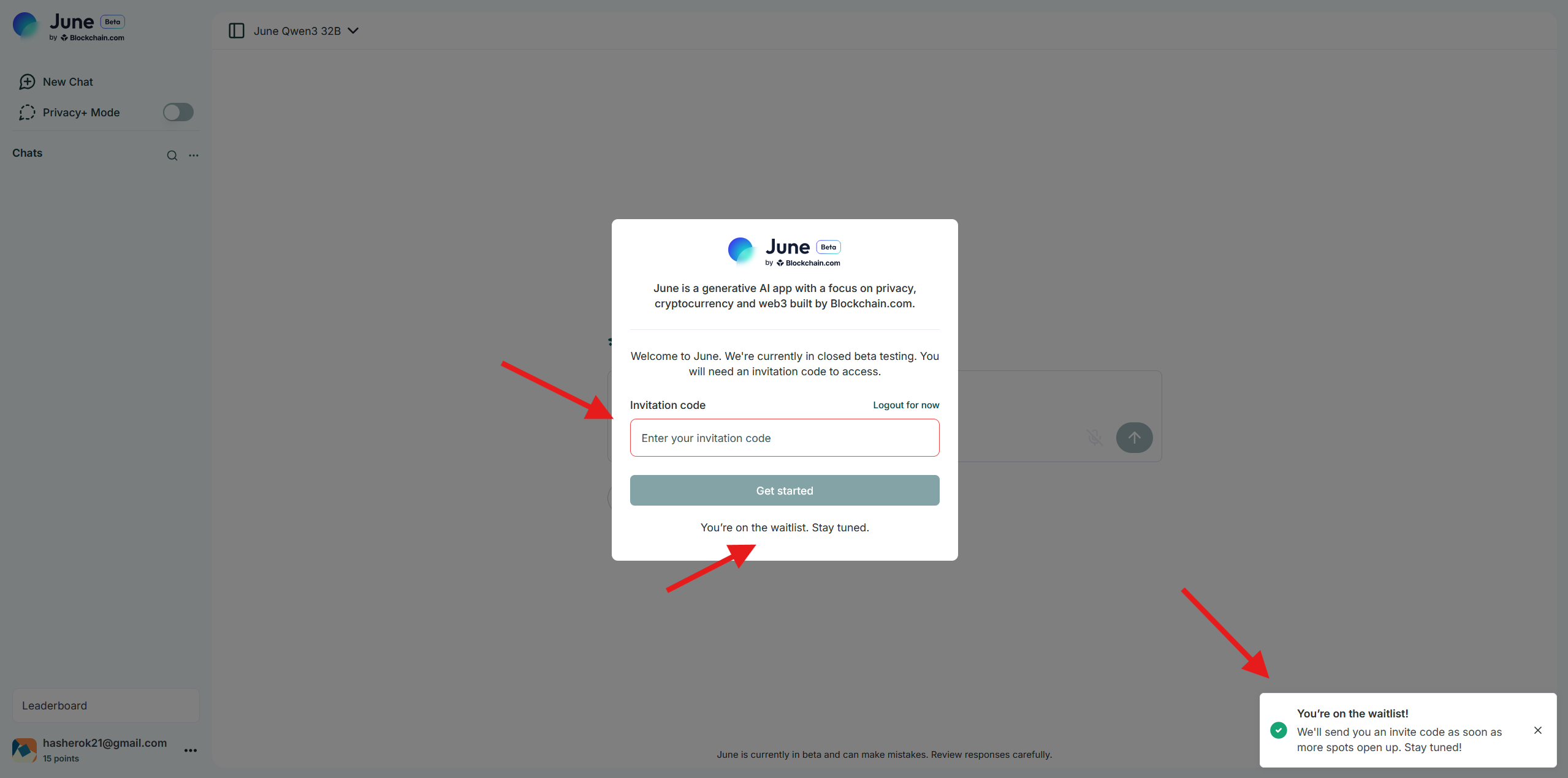 3. Enter the invitation code or take a place on the waitlist. Please note that the project may temporarily close registration. In this case, please try again later.