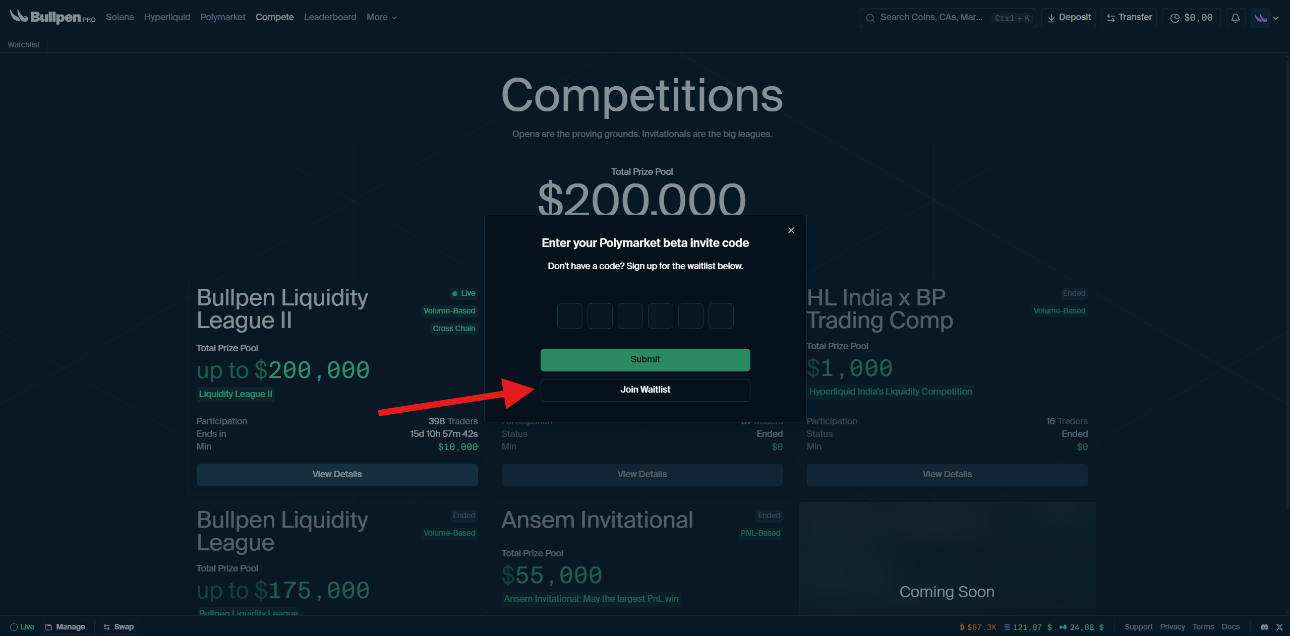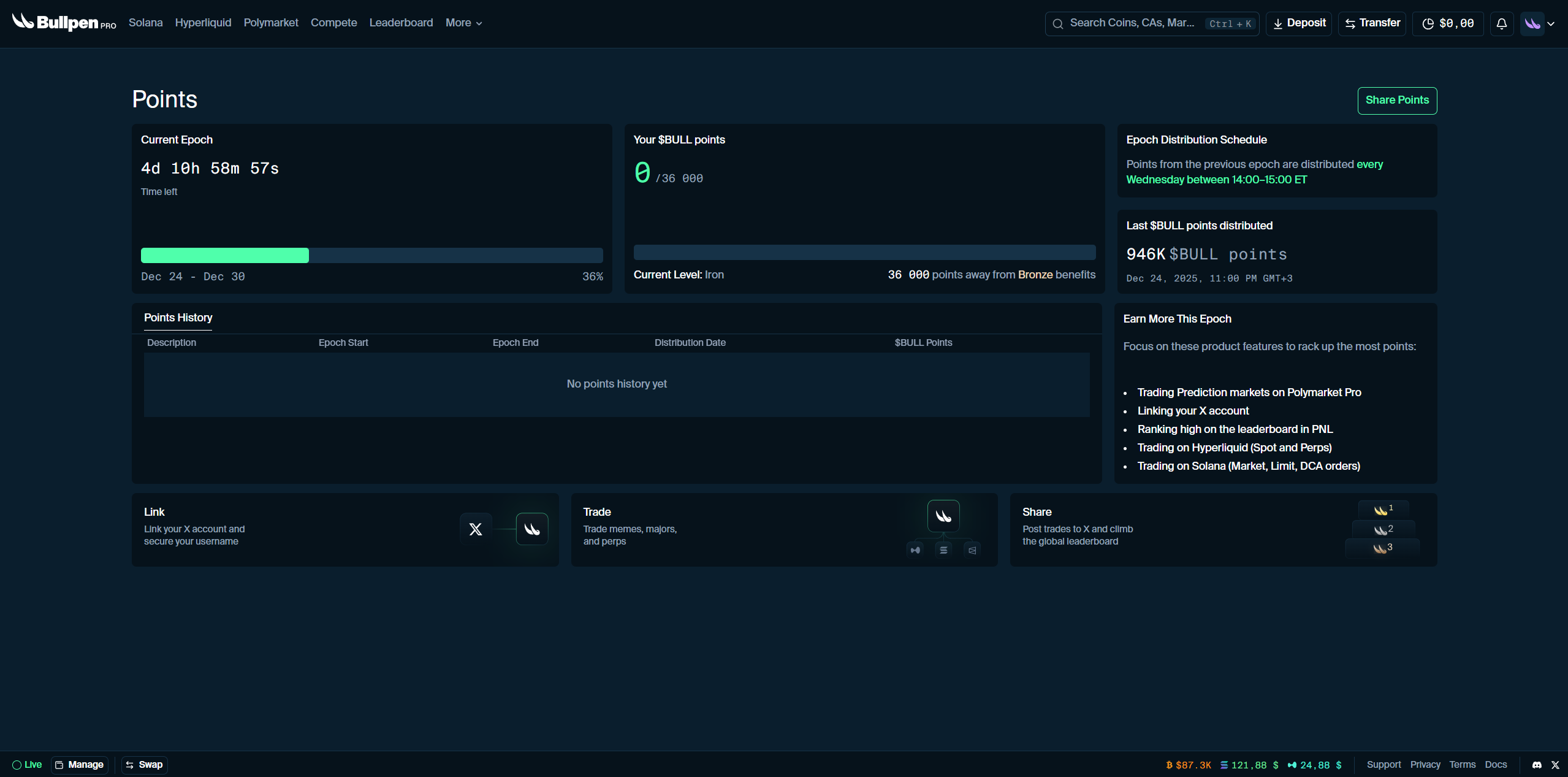 Bullpen has announced a points farming program some time ago! You can start trading and earn points.