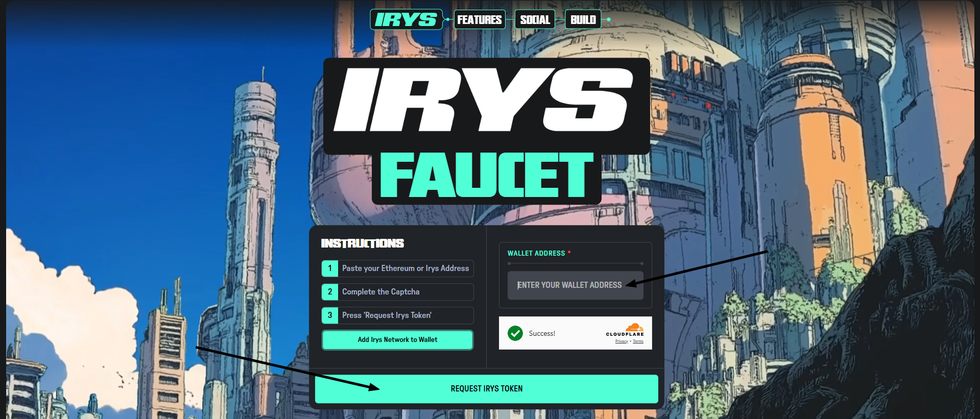 1. Go to the faucet, enter your wallet address, and request test tokens.