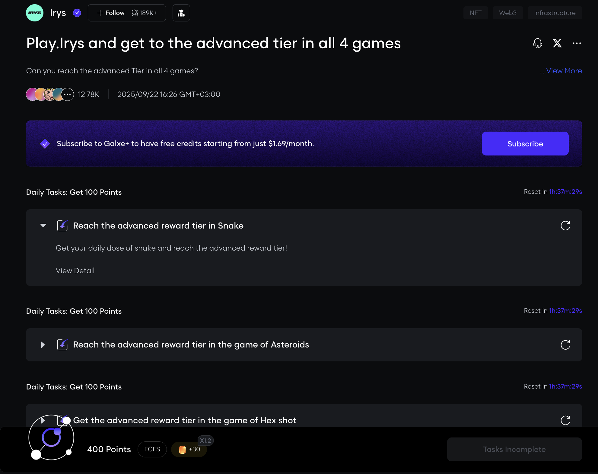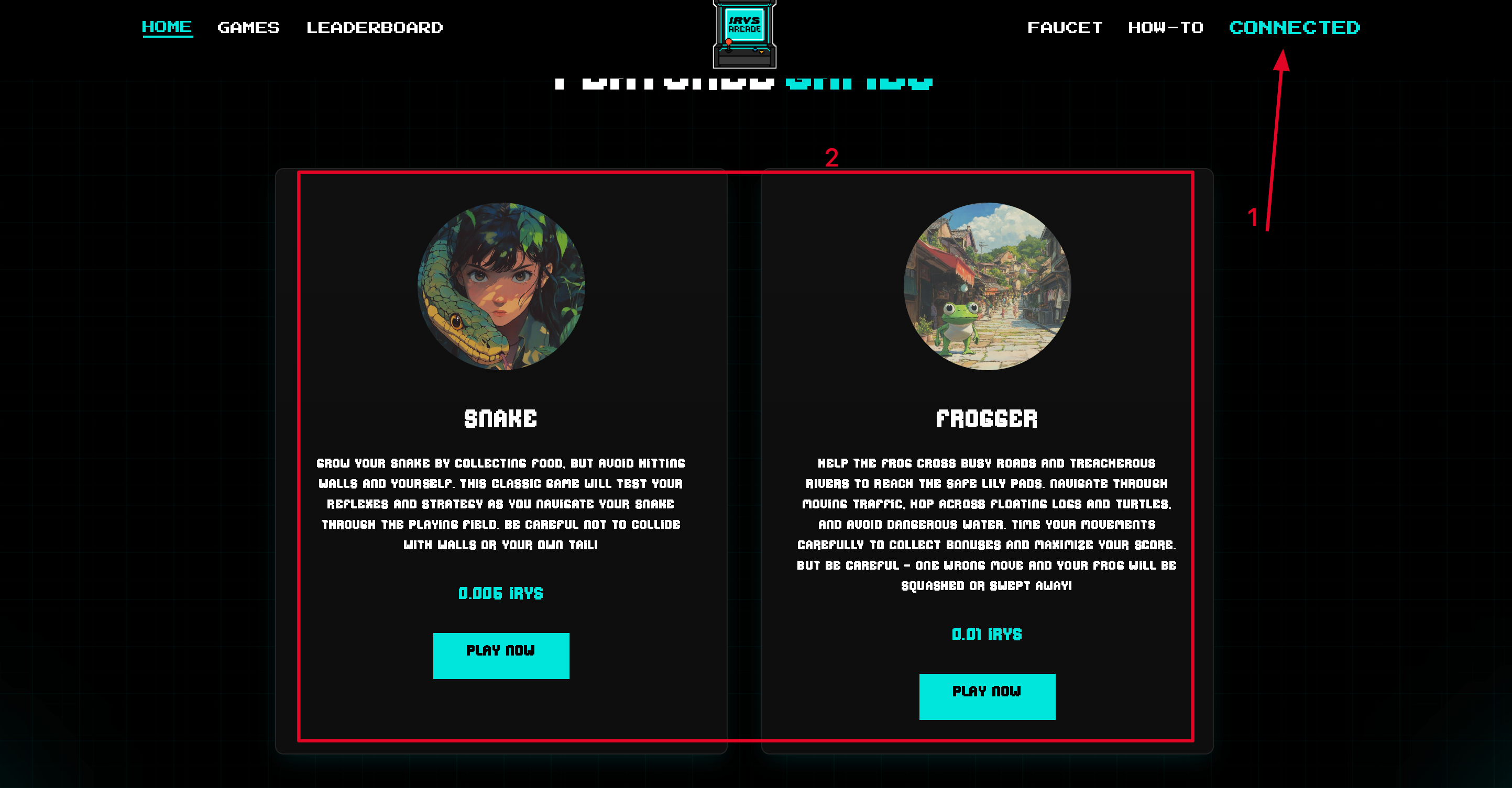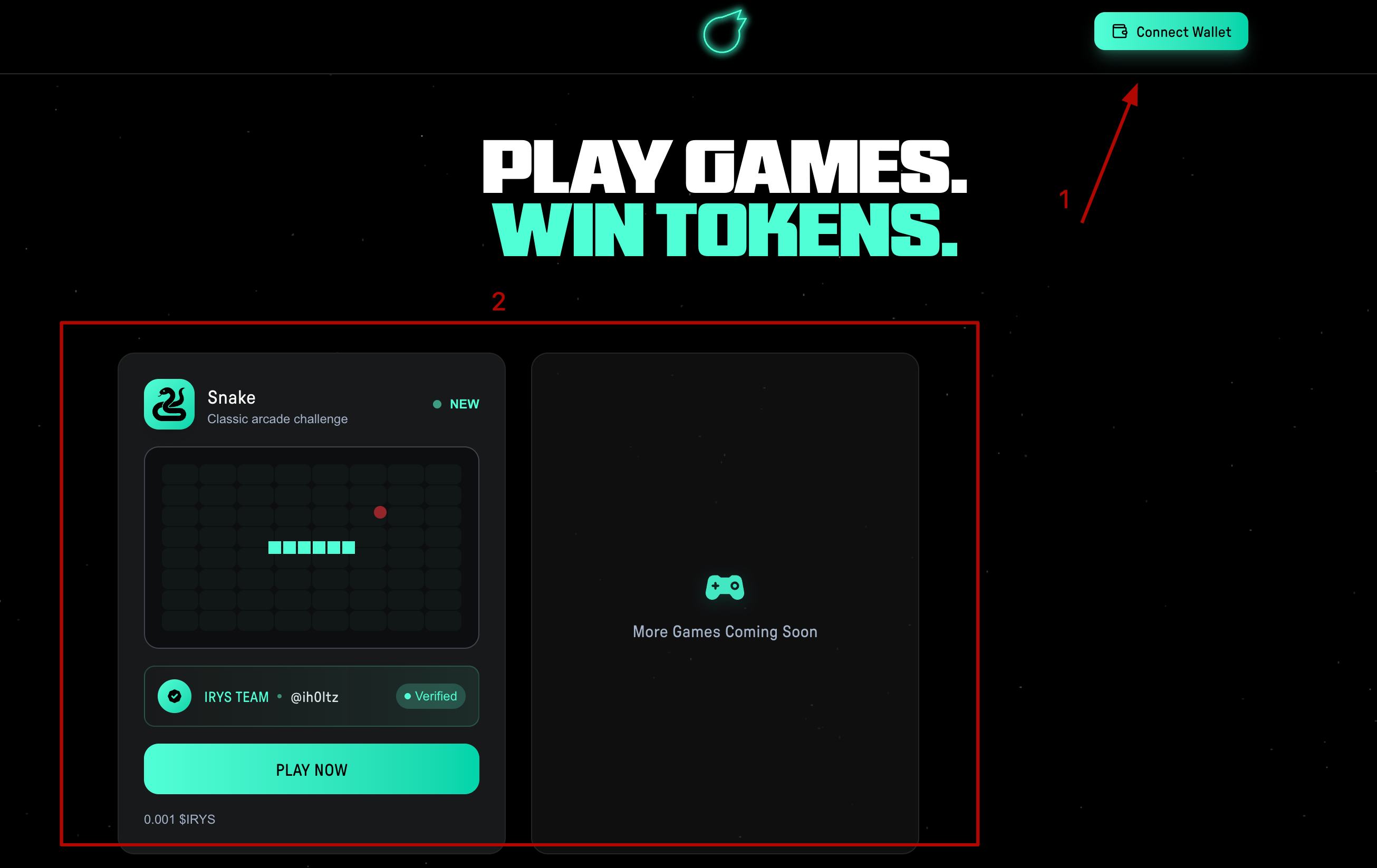 Irys has announced (join Discord to see the announcement) a new gaming platform. Currently, there is one game available, but new ones will be added every week. Test them all to increase activity on the test network.