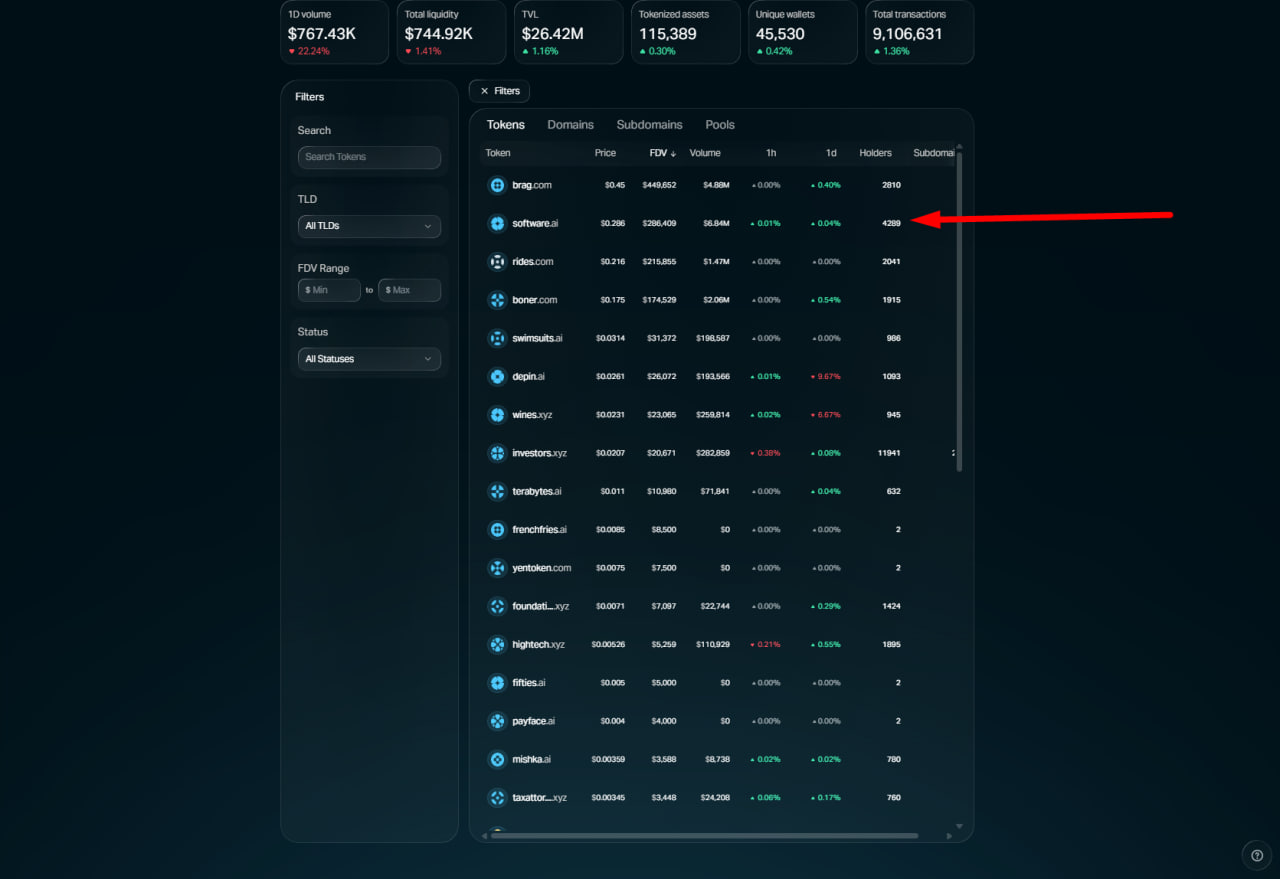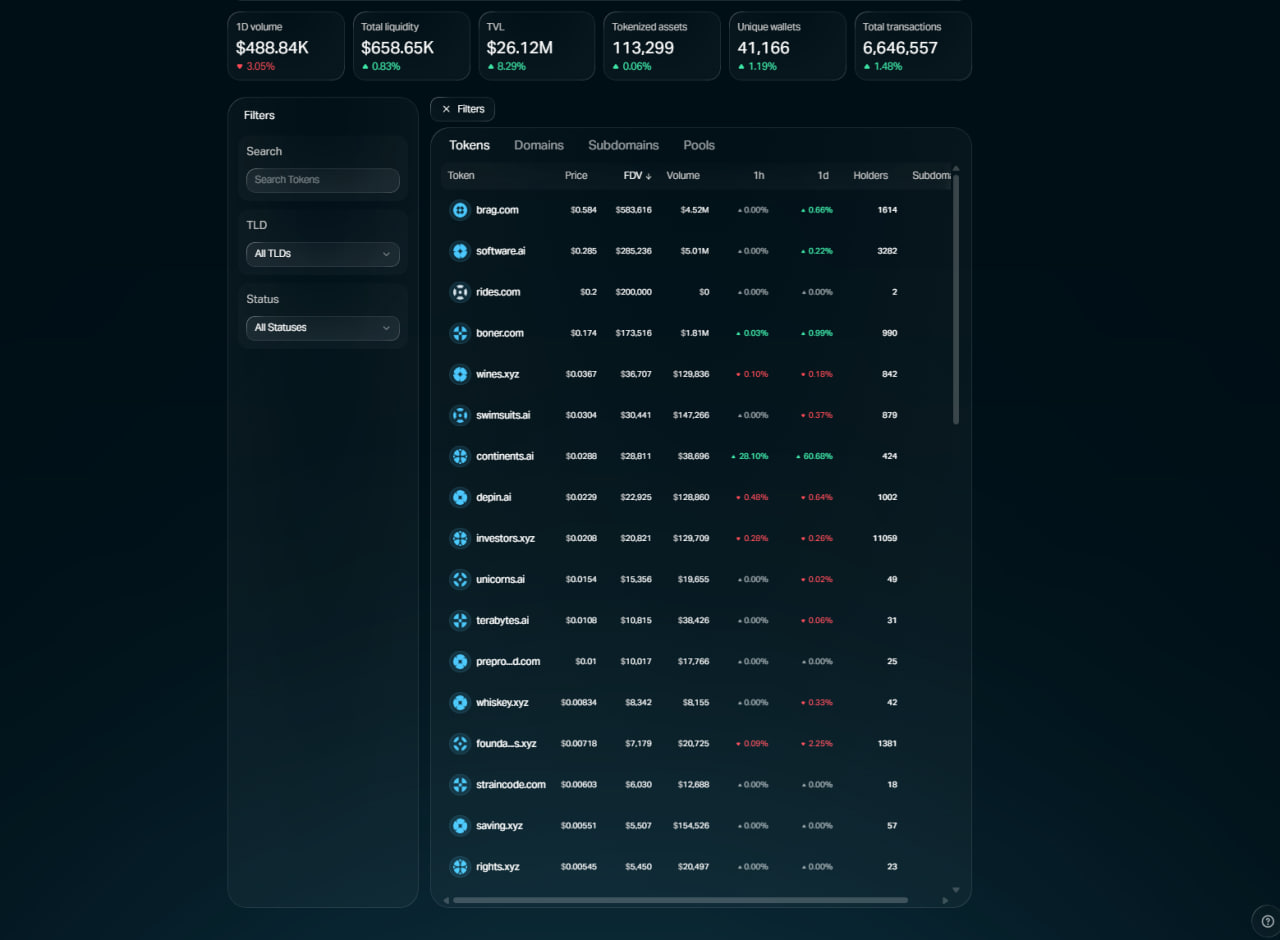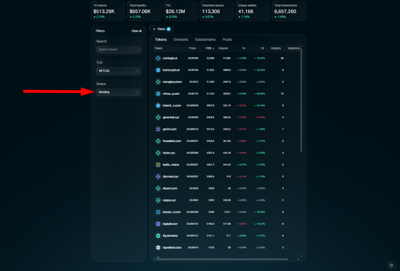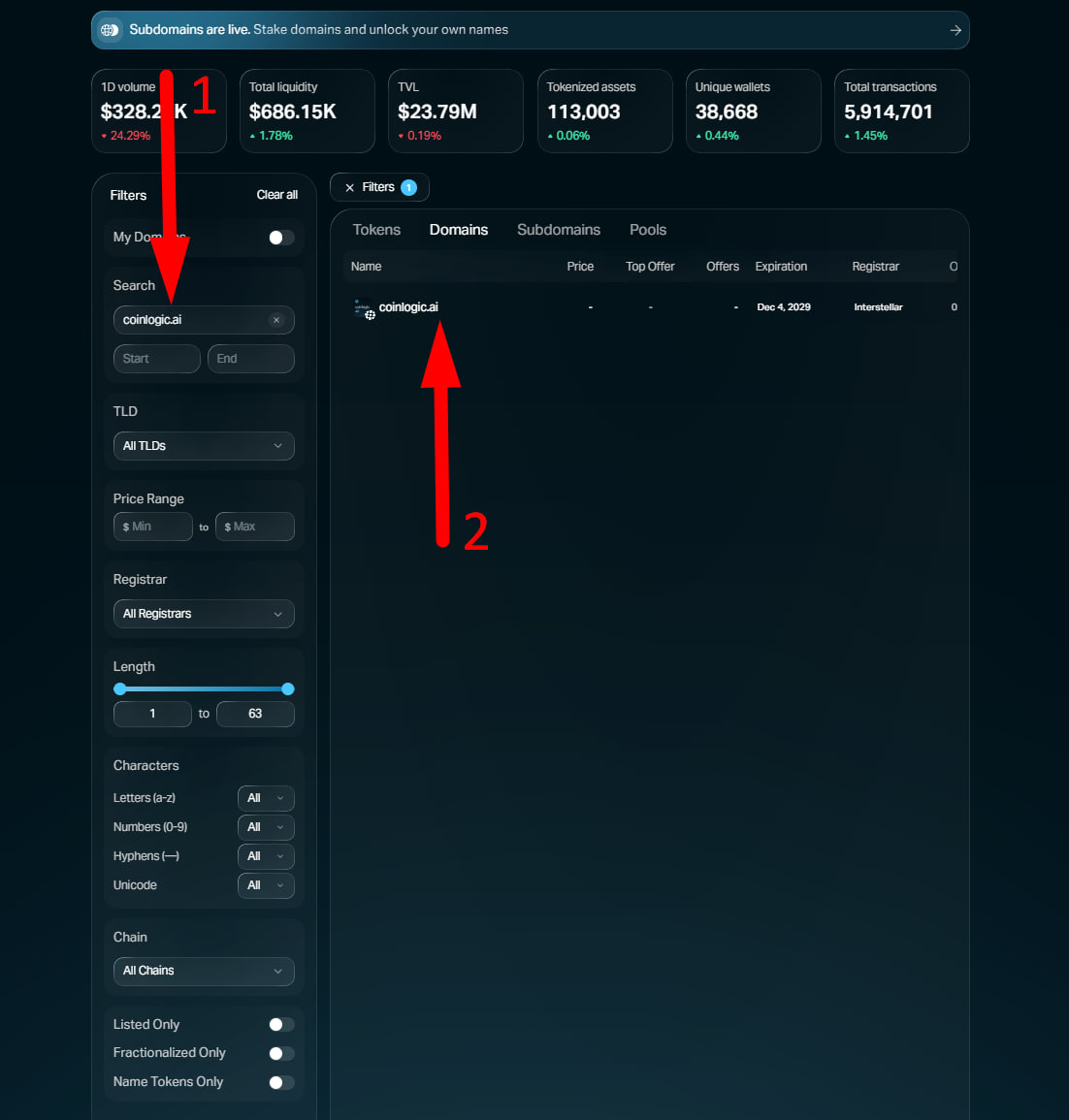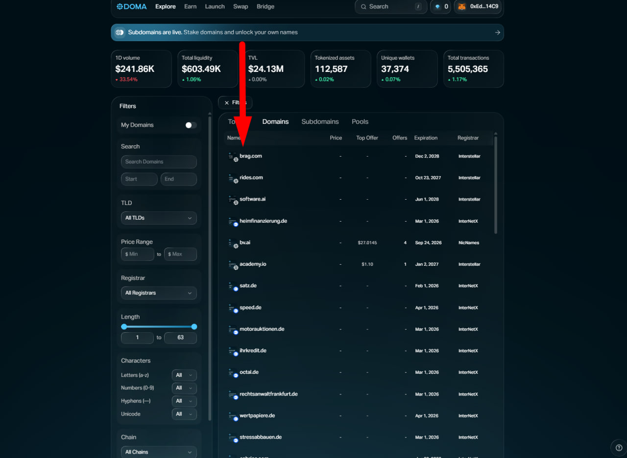 1. Go to the website and connect your wallet. Start trading domain tokens