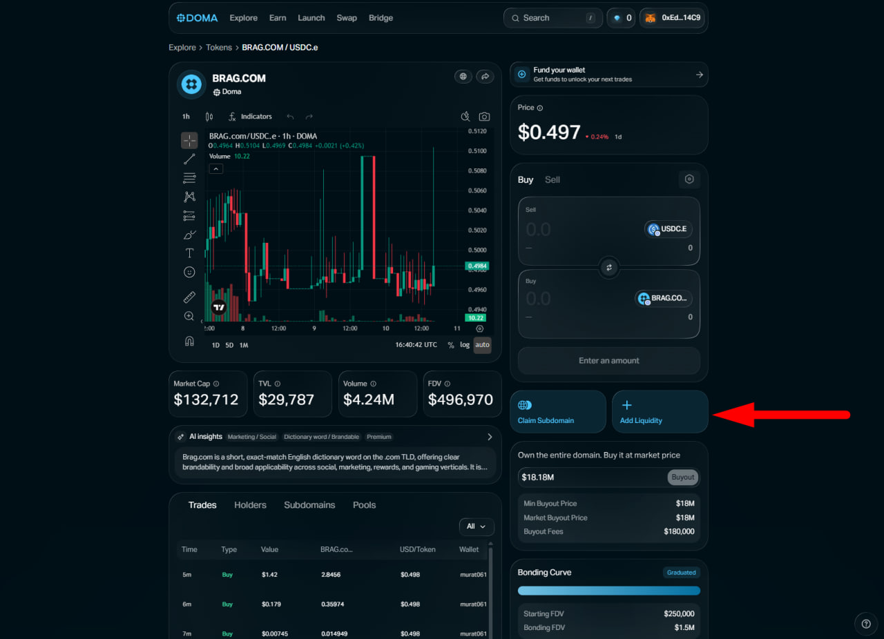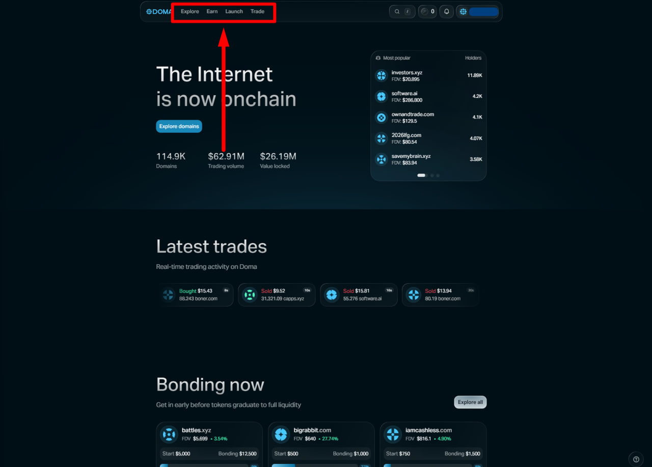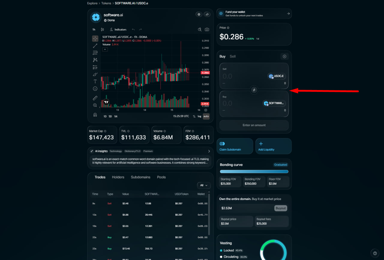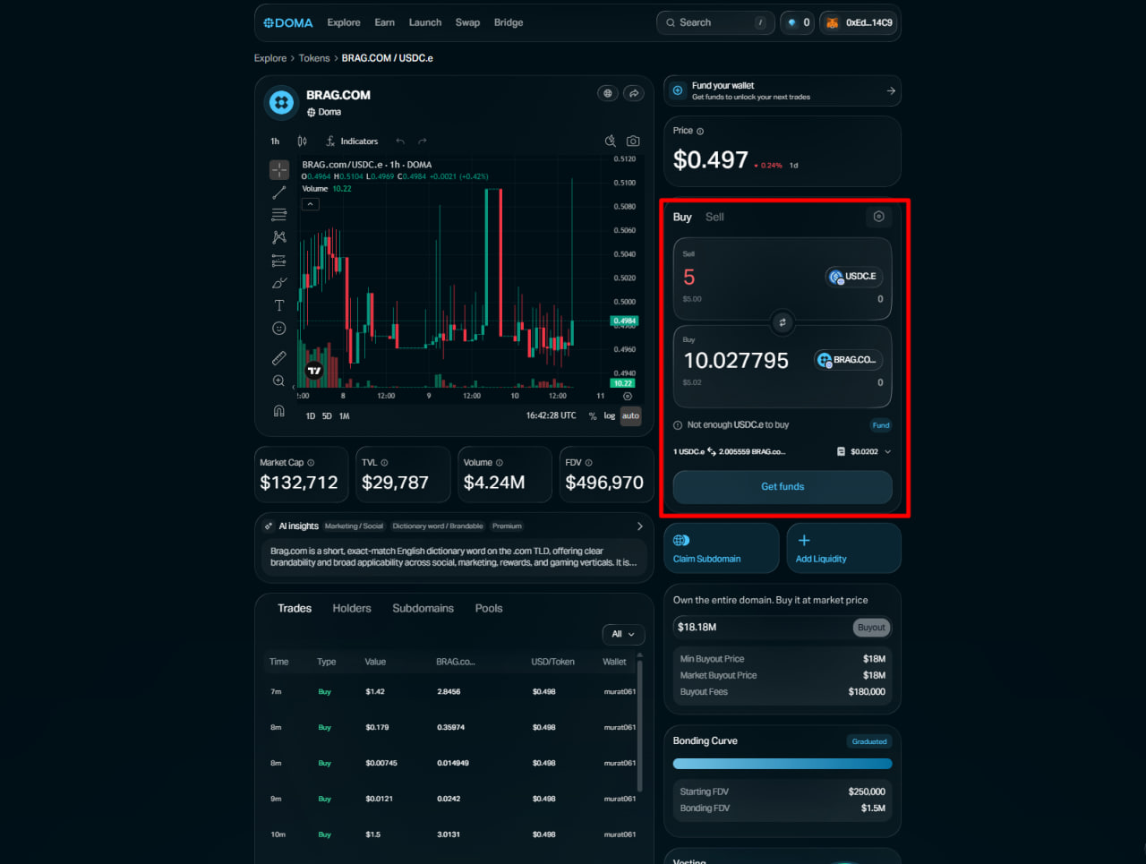 1. Go to the Doma website and select any token, then reach a trading volume of $50