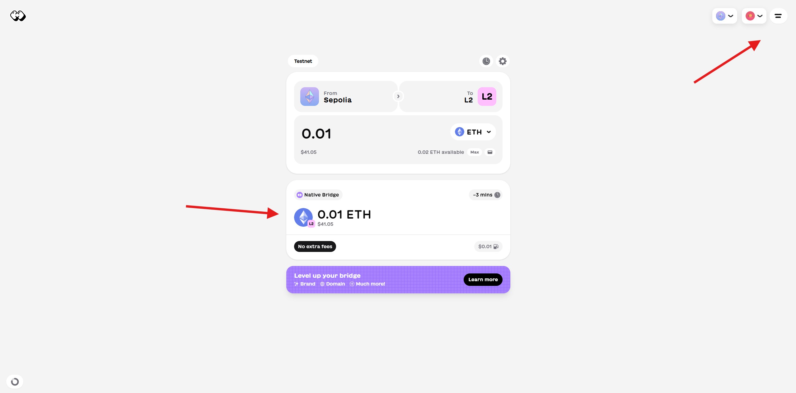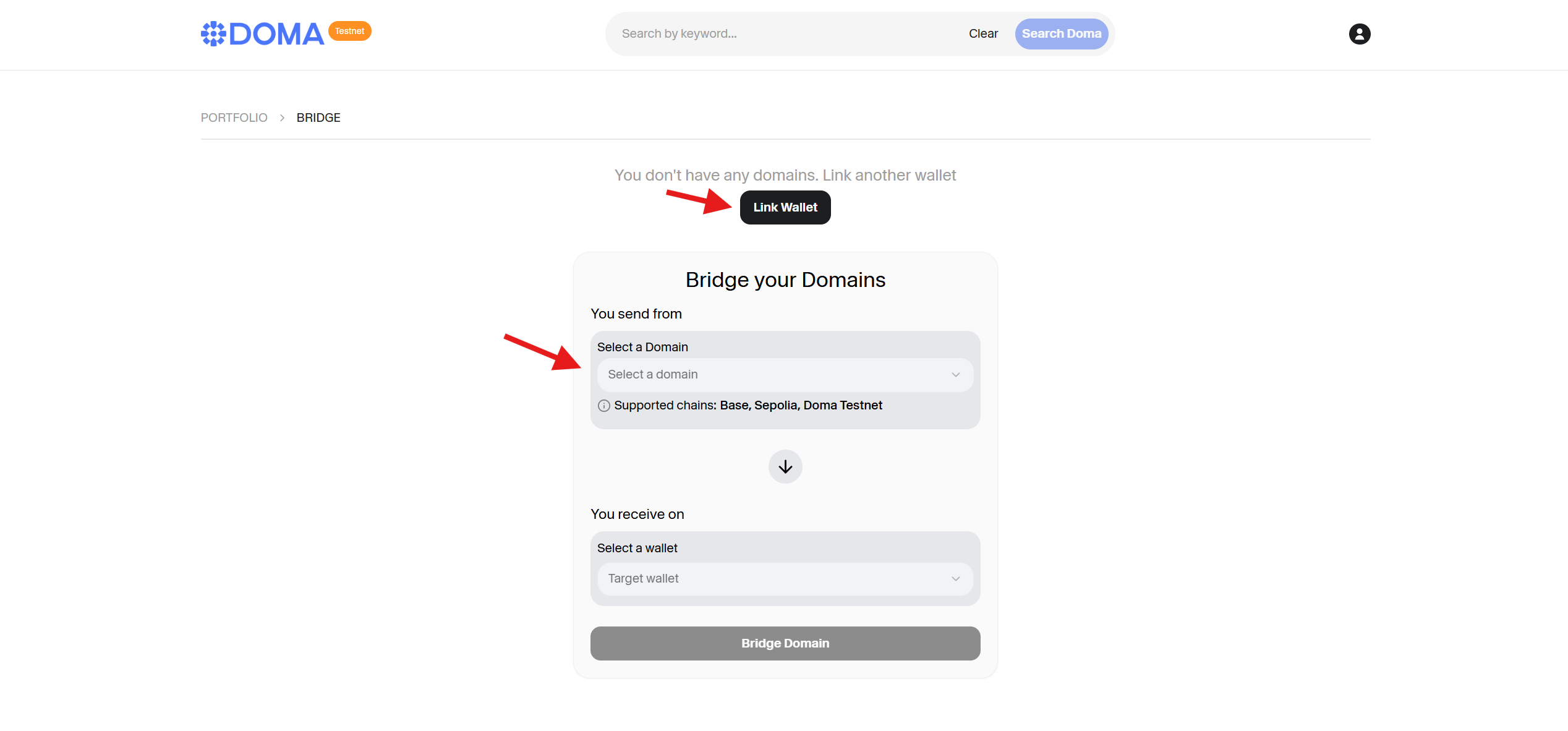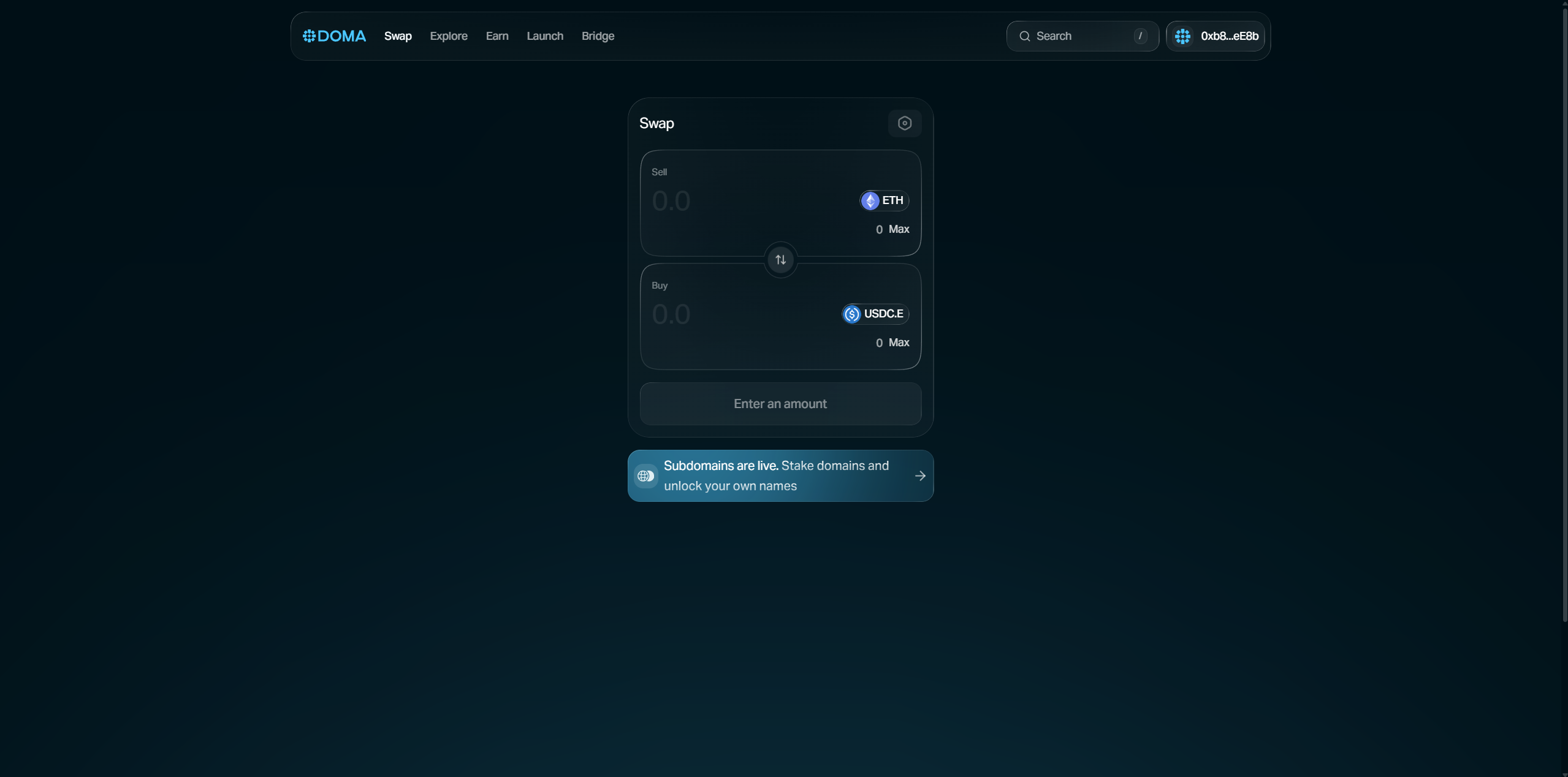 2. Go to website and Bridge Sepolia ETH to Doma Testnet. Use https://rpc-testnet.doma.xyz as rpc if default won't work.