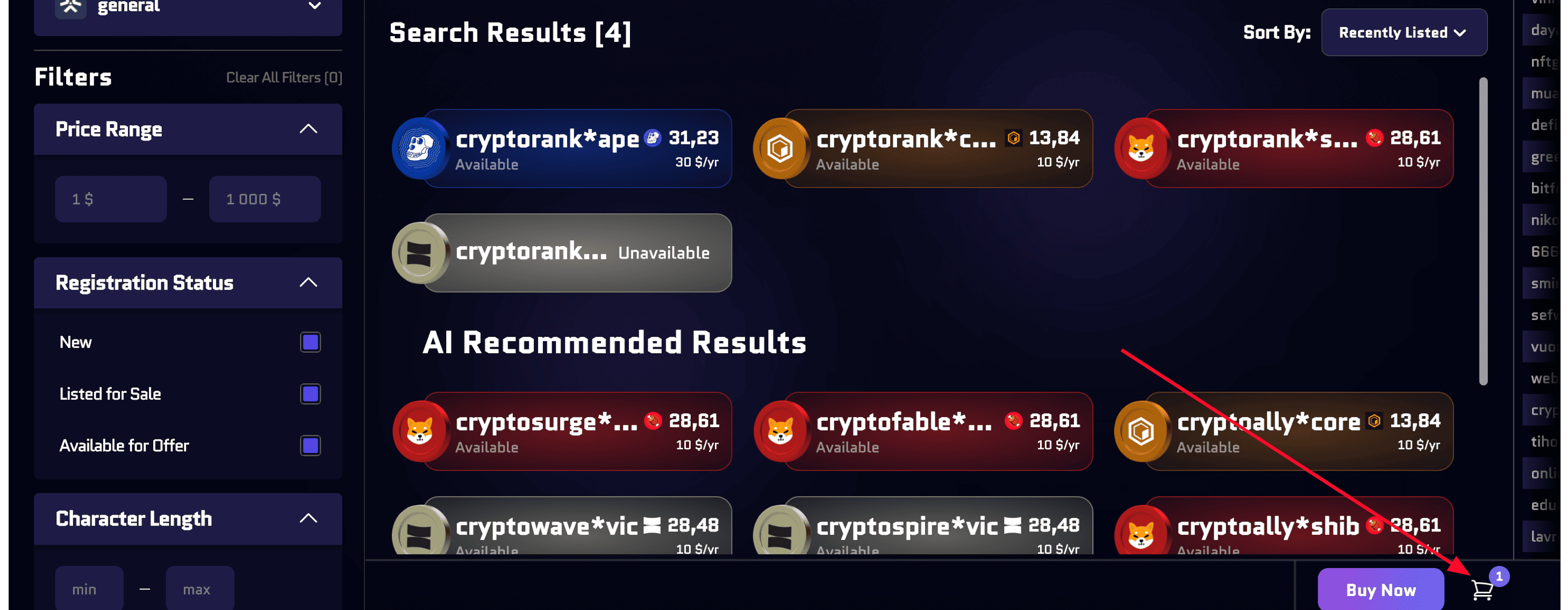 4. Mở giỏ hàng và mint tên miền: