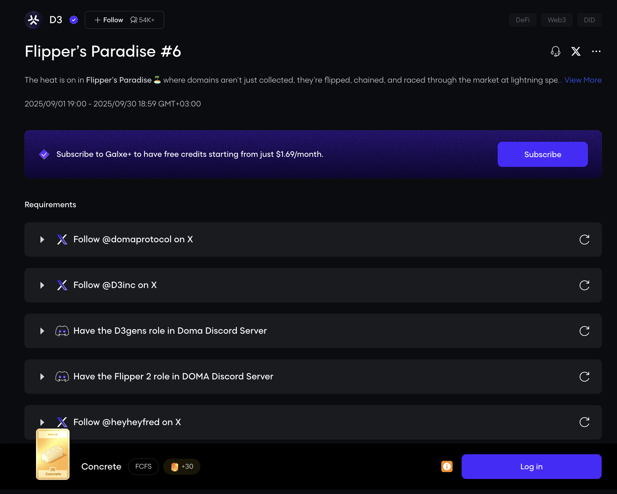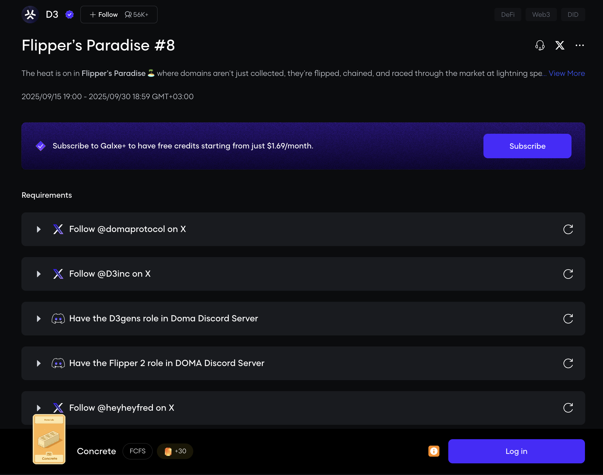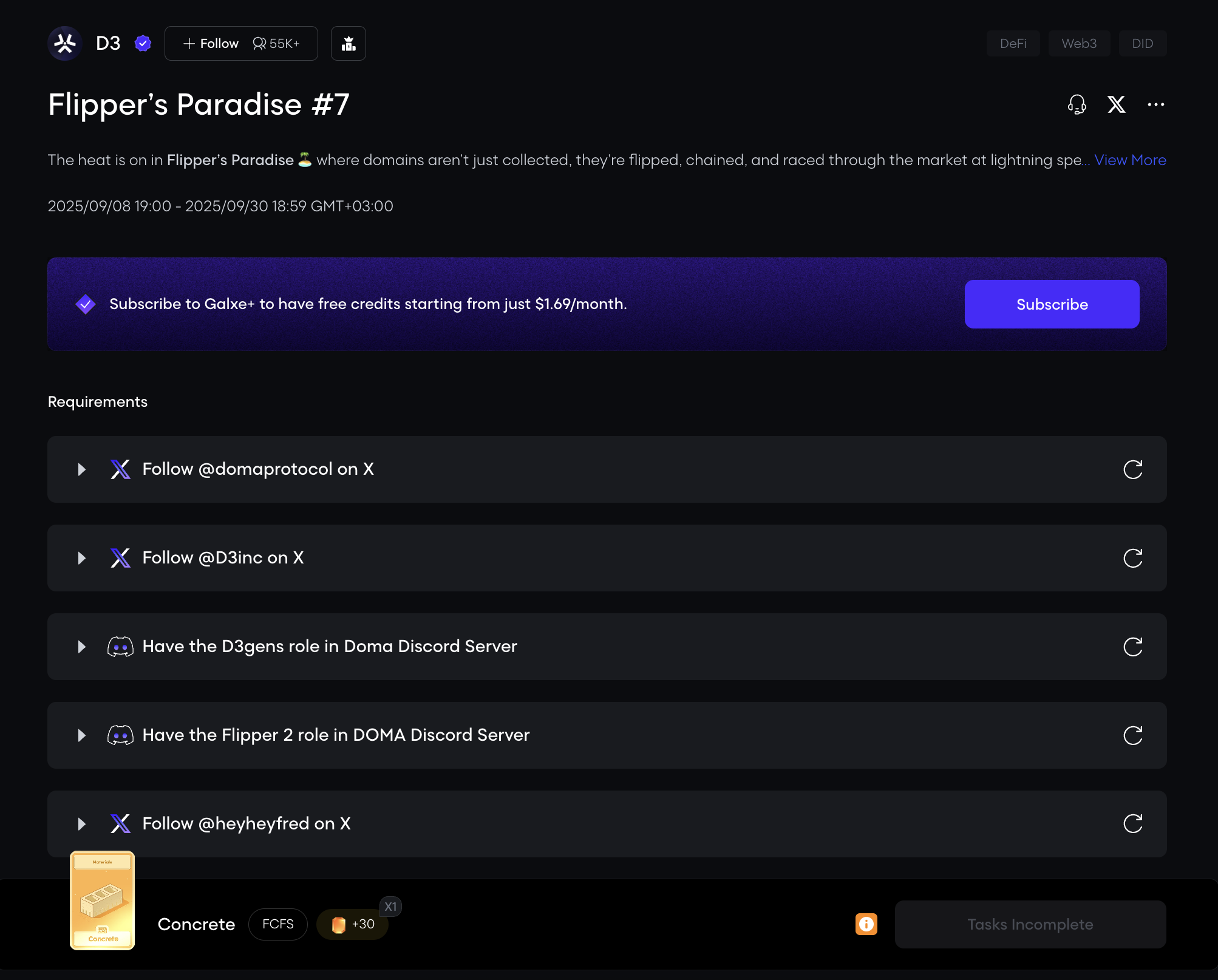 D3 launched tasks on Galxe. Complete them and earn points, which can be one of the criteria for getting airdrop.