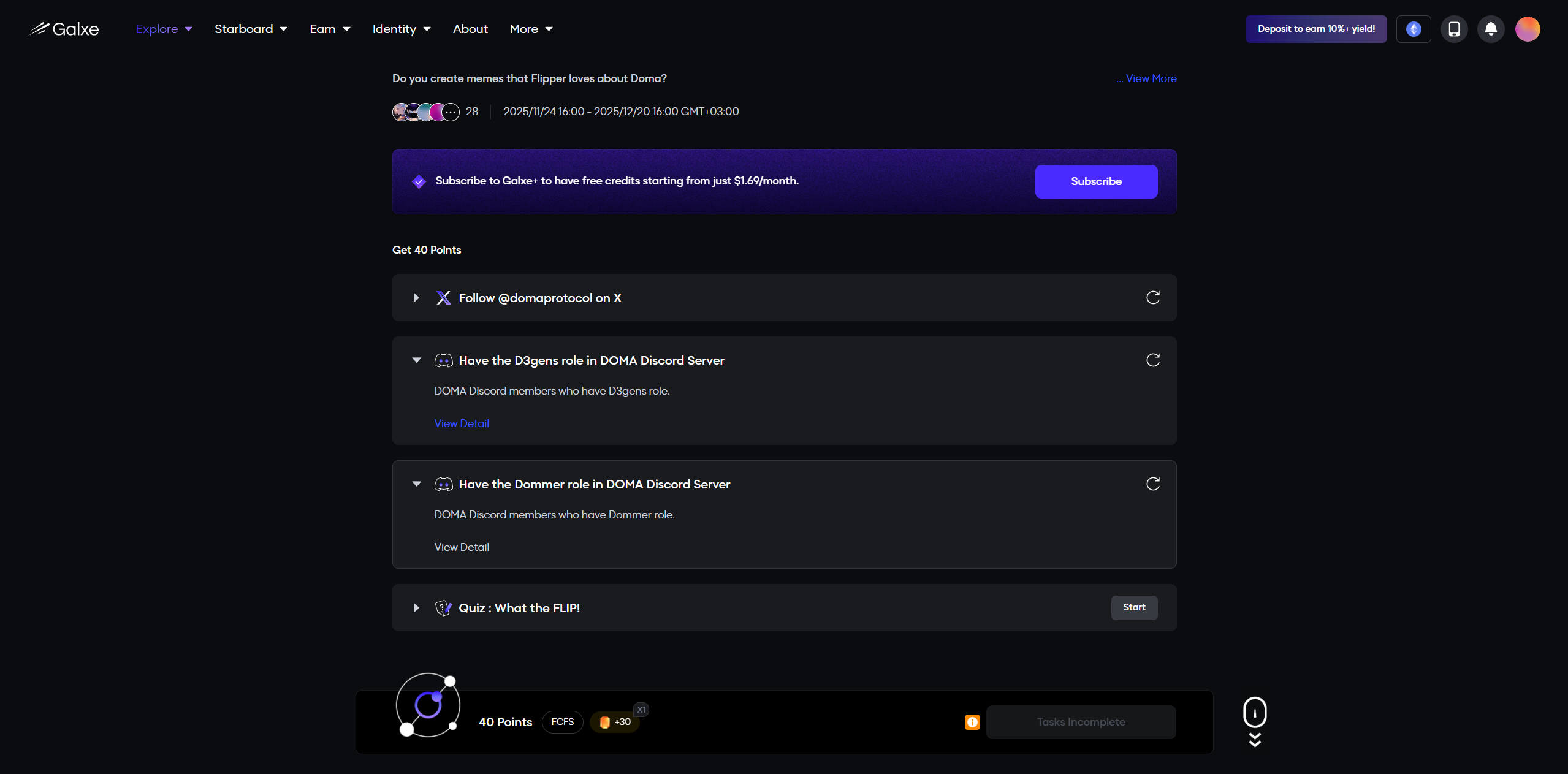 Doma has launched new task on Galxe. Complete task and earn points, which can be one of the criteria for getting airdrop.