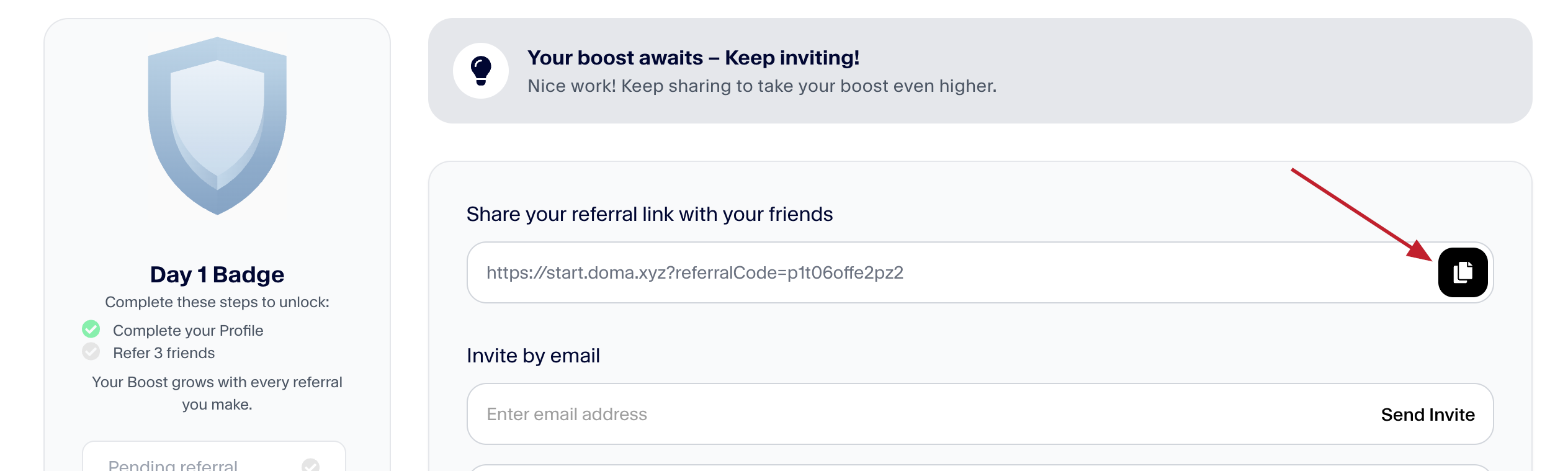 3. Sao chép liên kết giới thiệu và mời 3 người bạn. Sau đó, bạn sẽ nhận được huy hiệu của mình.