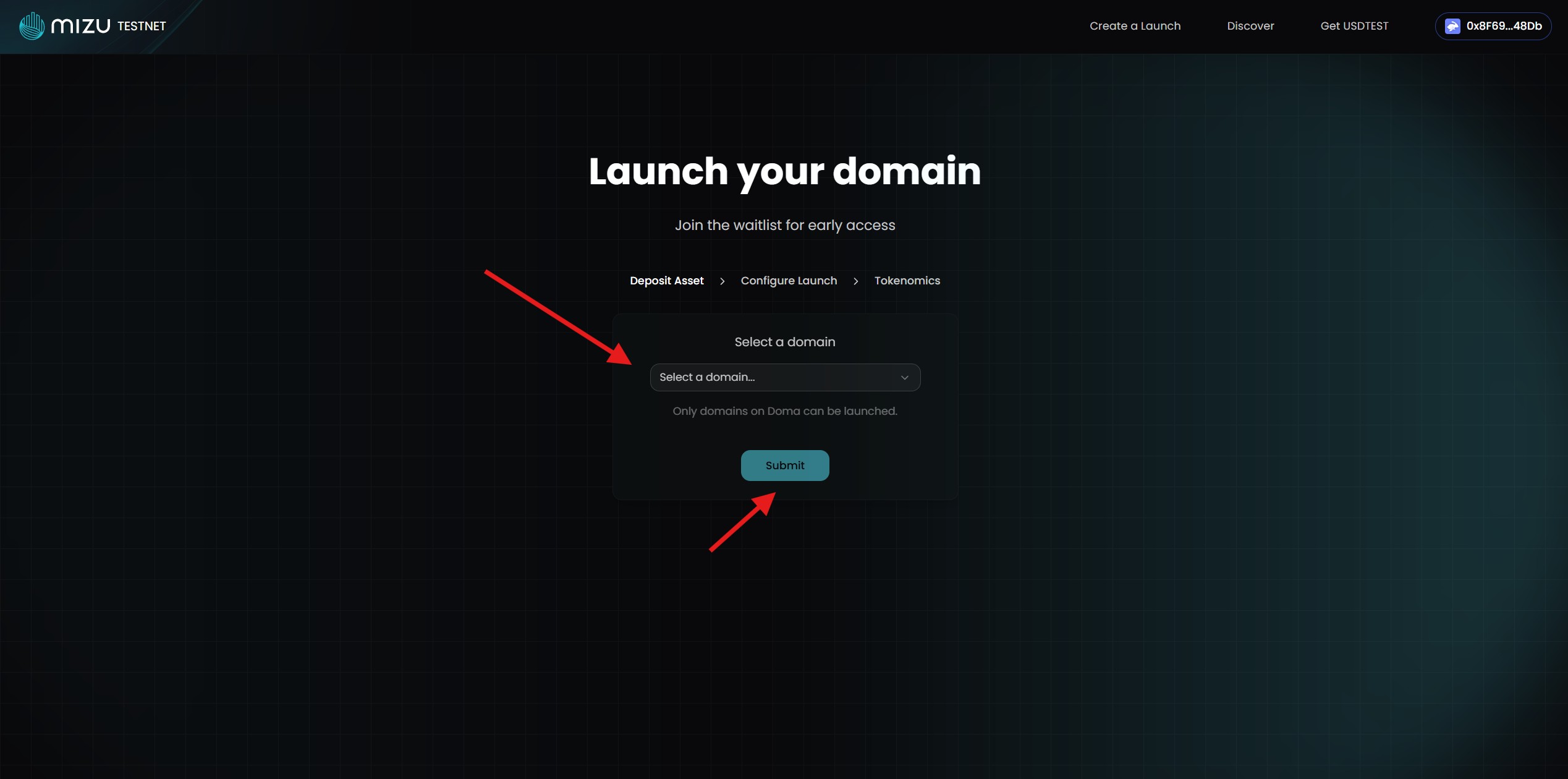 4. Launch your own domain in Create a Launch section.