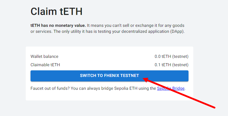 Then add the Fhenix test network and click on "Claim еETH".