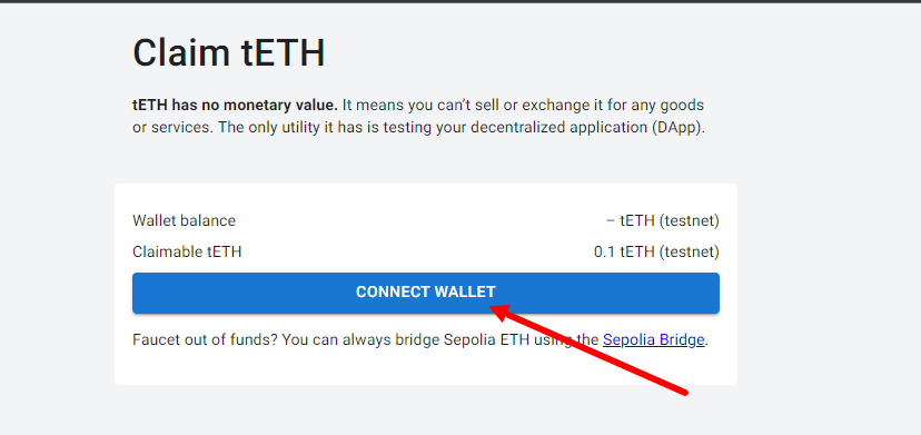 1. Go to the website and connect your wallet. Select the Sepolia network. Note that you need test ETH. To request test coins use Faucet.