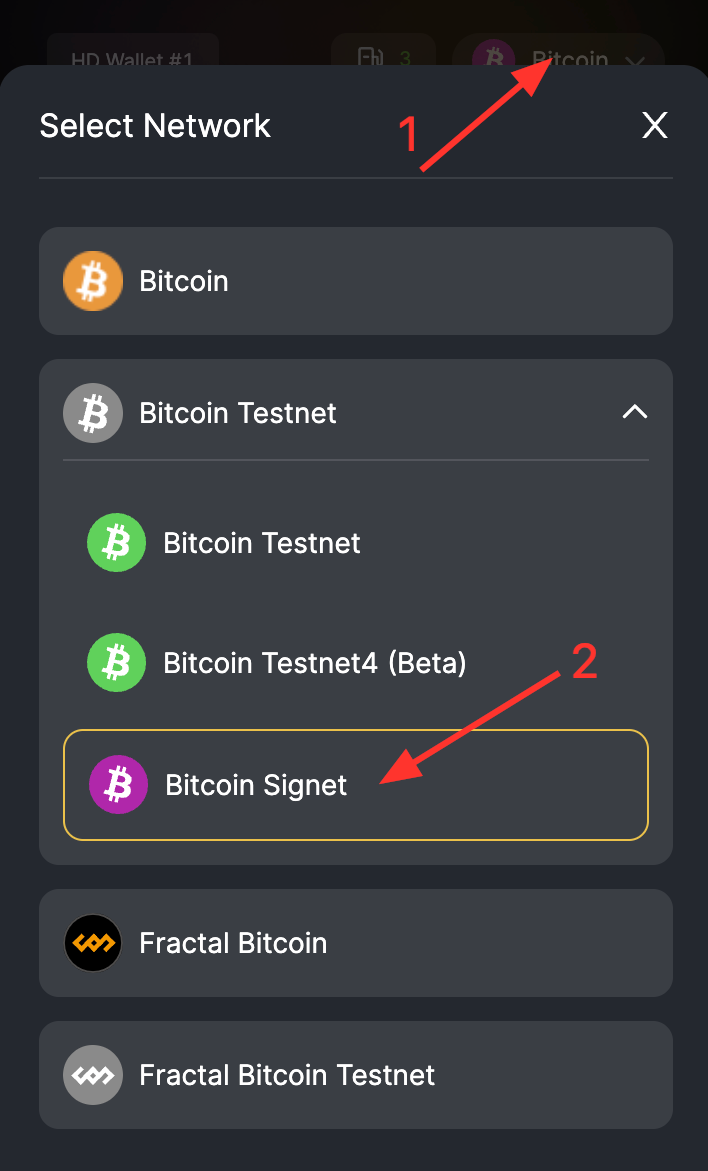 4. Request test BTC tokens from the faucet (1, 2, 3).