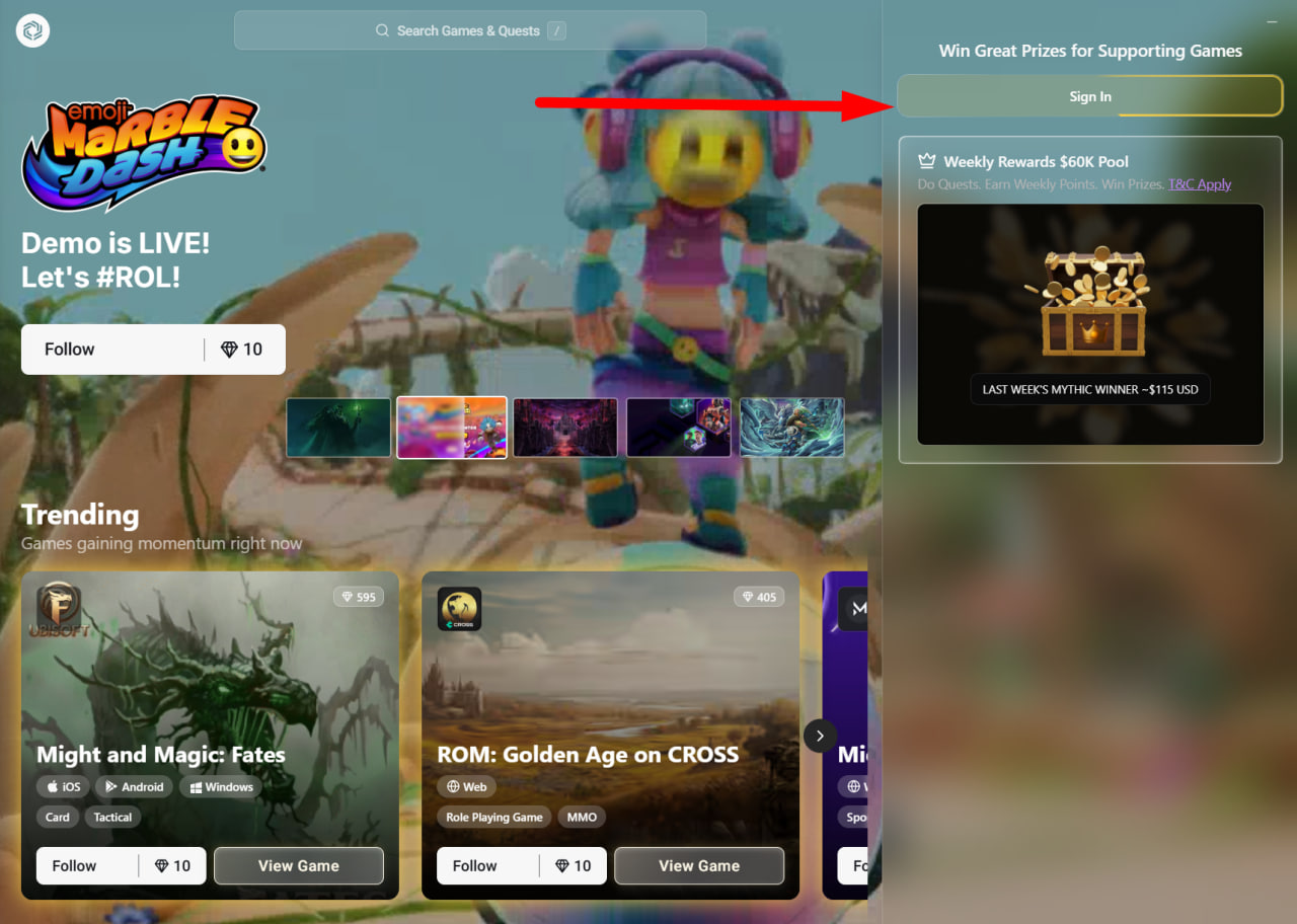 4. Play games on the platform, earn gems, and exchange them for rewards: