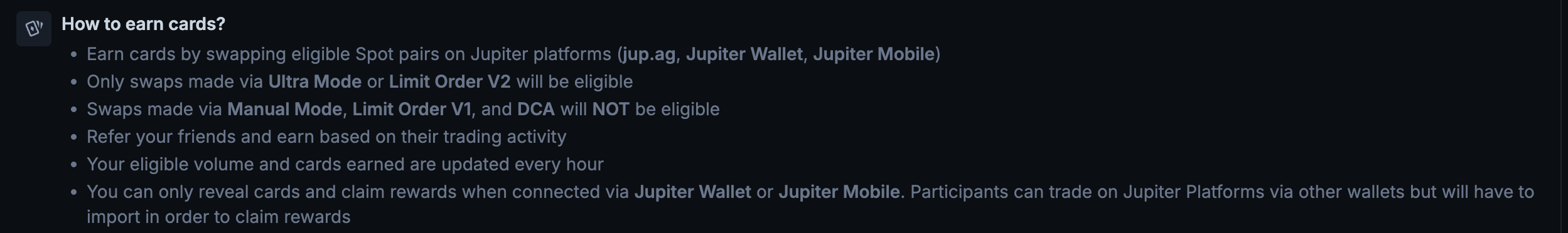 Jupiter has announced a new campaign with a prize pool of $1 million, which will run until February 1! We can trade on the platform, invite friends, and earn cards for doing so. There are 5 types of card rarity in total. The rarer the card, the better the rewards. You will need the Jupiter Wallet extension to participate.