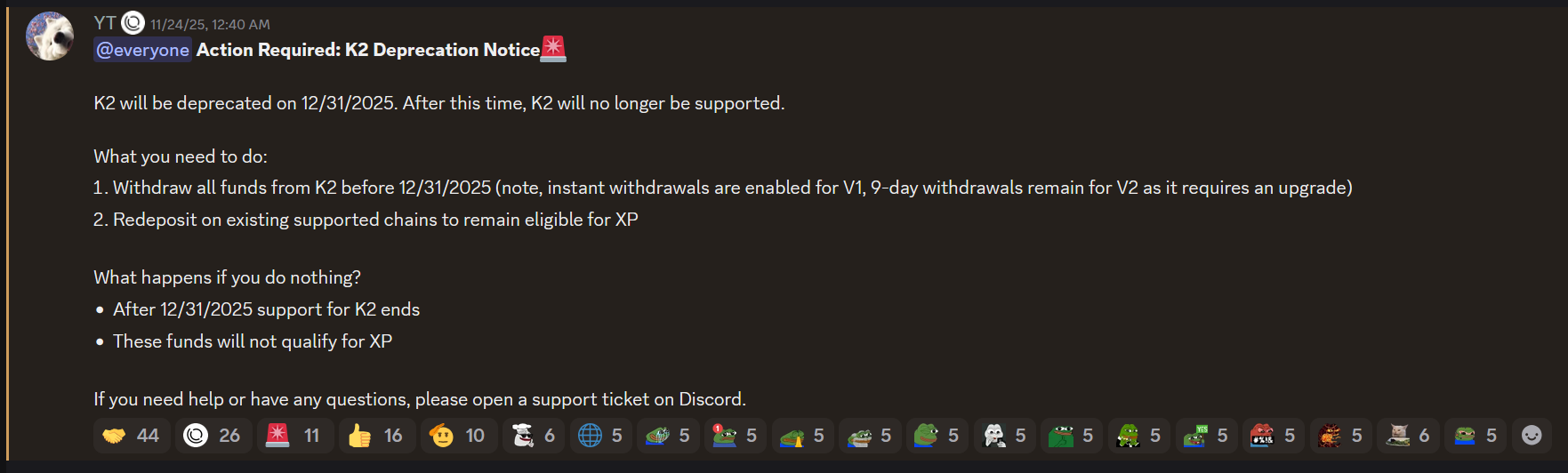 OpenGDP has announced in Discord the closure of the K2 Network by the end of 2025. You can perform Unstake and Bridge to preserve your coins.