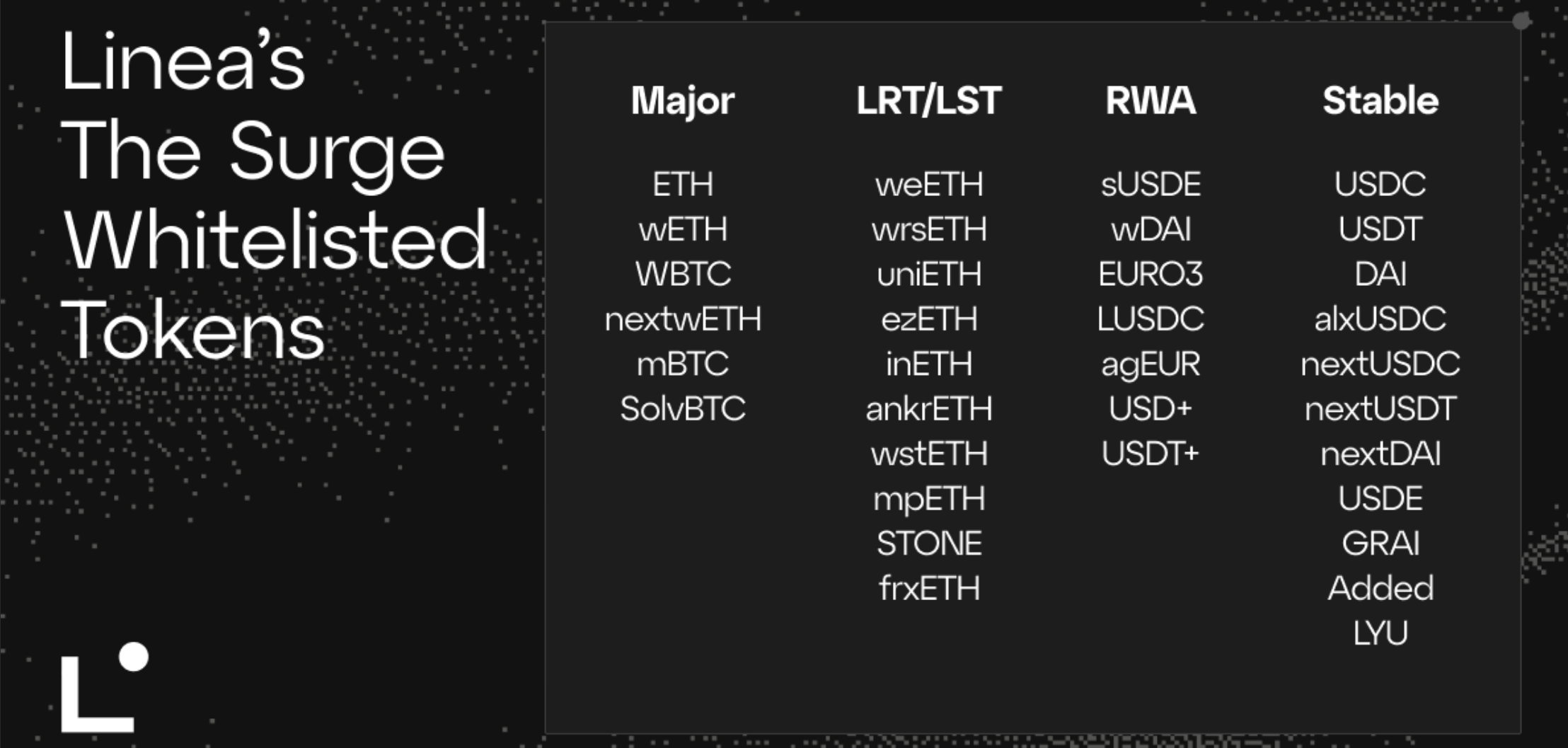 The following tokens have been whitelisted for the Linea Surge: