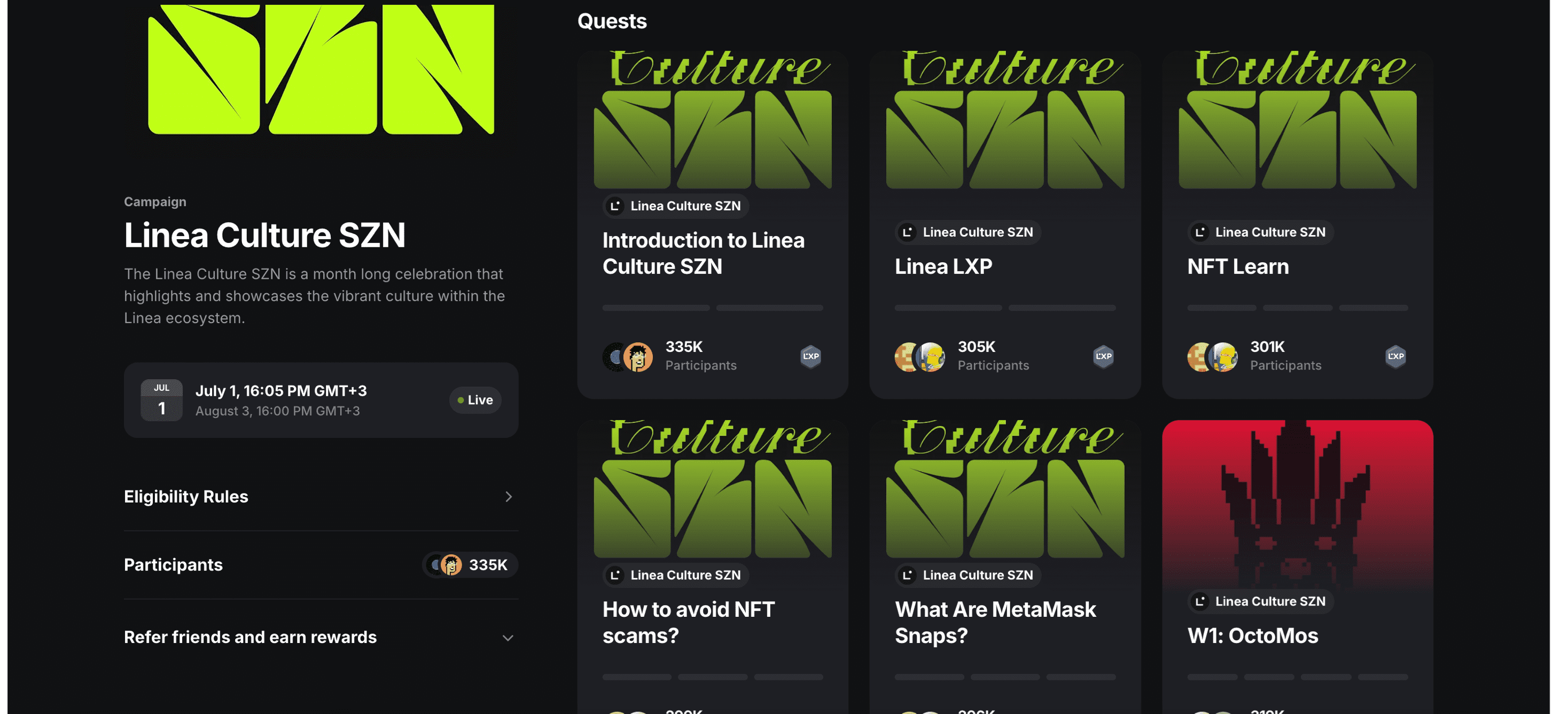 Linea have launched the Culture SZN campaign. Joining Culture SZN is simple. Users are invited to mint NFTs and vote for their favorite communities. Minting is free, with the only cost being gas.