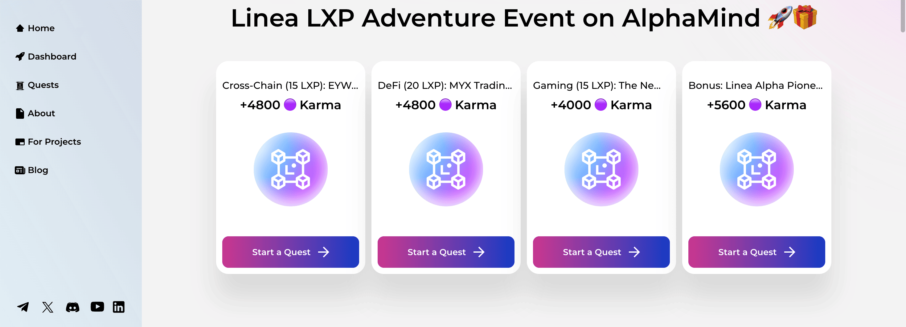 1. Go to the website, connect your wallet, complete all available quests and mint NFT. Please note that the deadline for the first quests is July 2, 12:59 UTC: