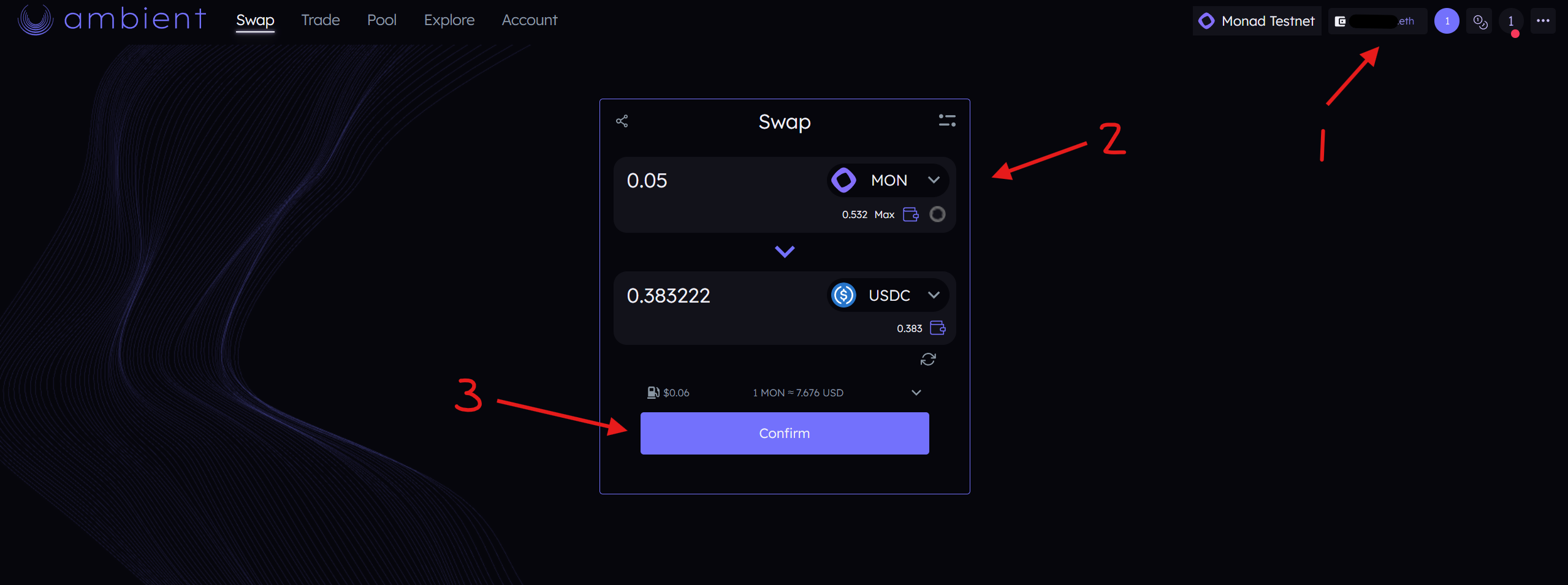 10. Thực hiện swap Ambient. Chọn một cặp và thực hiện giao dịch.