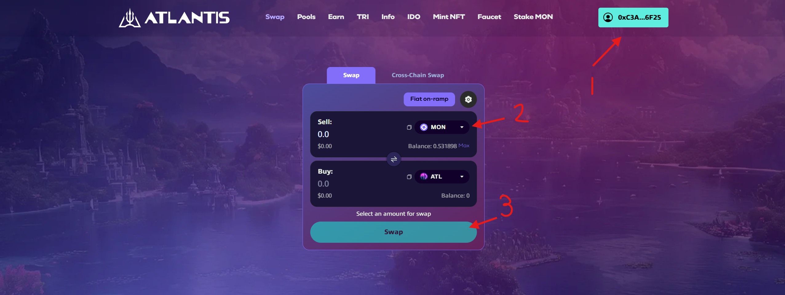 7. Thực hiện swap trên Atlantis, kết nối ví, chọn một cặp và thực hiện Swap.
