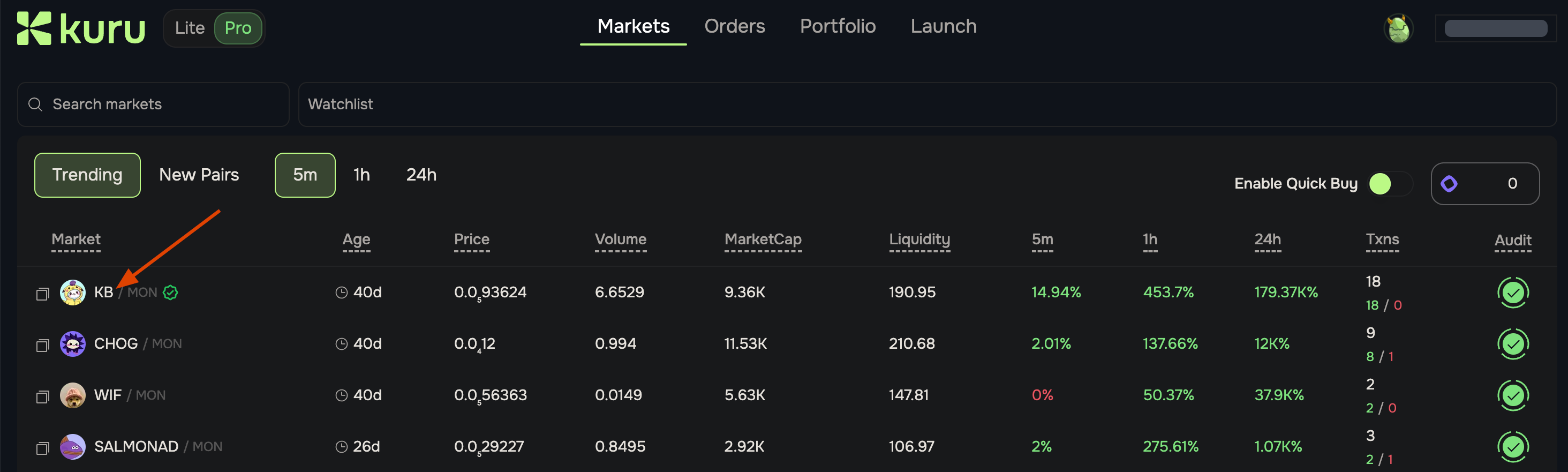 5. Sau đó bay vô trang web Kuro và mua một số token (không chi tiêu quá 0,1 MON):