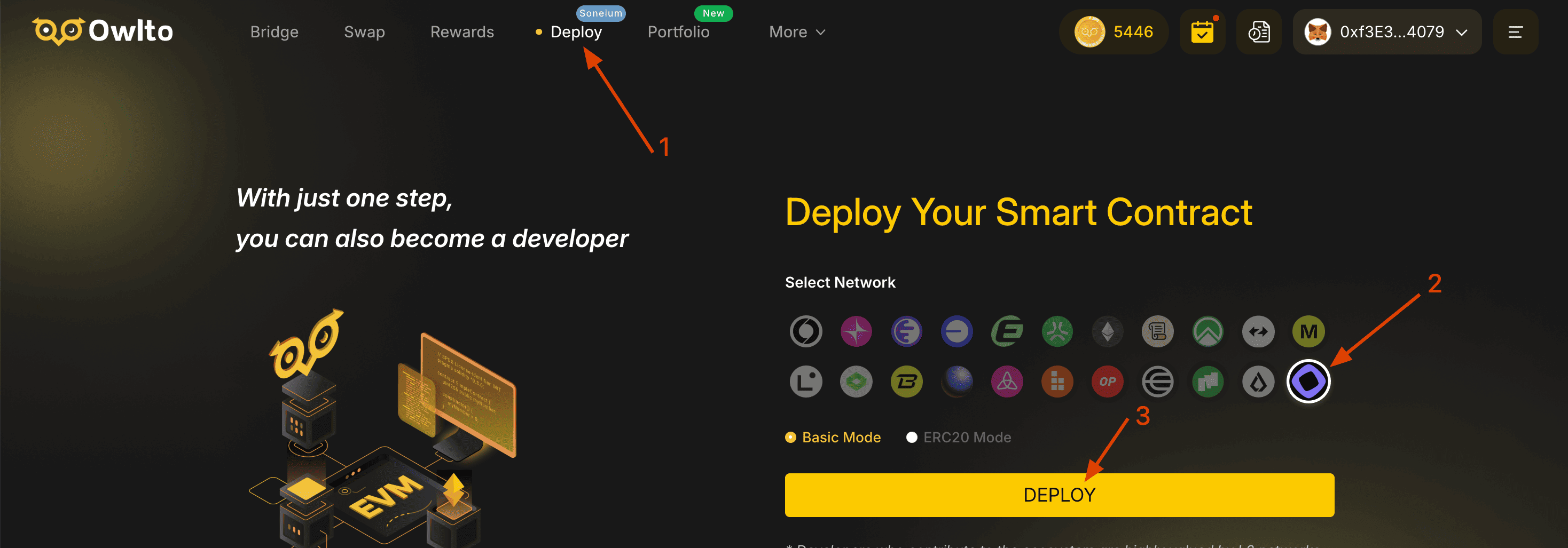 5. Bay vô Owlto, kết nối ví của bạn và triển khai token: