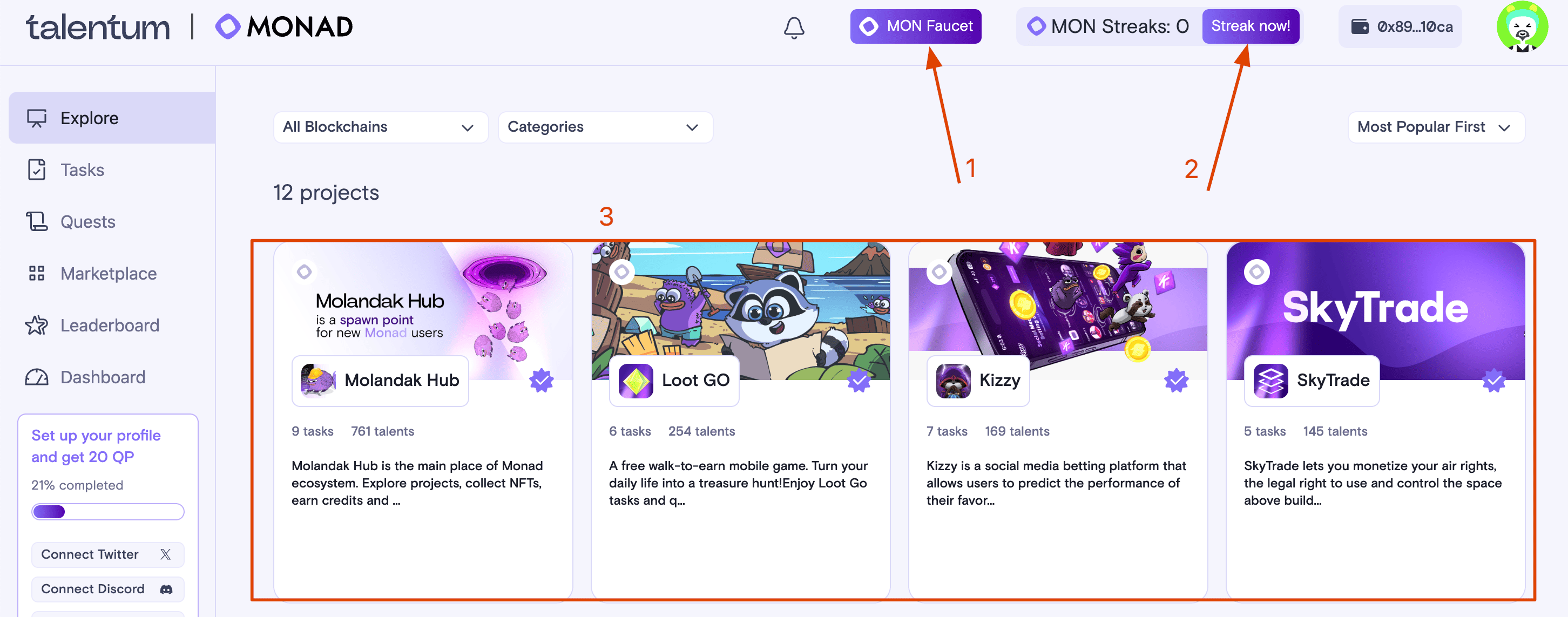 Chúng tôi nhắc bạn rằng chúng tôi đã có một hướng dẫn chi tiết để bắt đầu với hệ sinh thái Monad. Để có được nhiều giao dịch và tương tác độc đáo hơn, chúng tôi khuyên bạn nên làm quen với các dự án khác từ hệ sinh thái Monad. Bạn càng tạo ra nhiều hoạt động độc đáo, càng tốt!