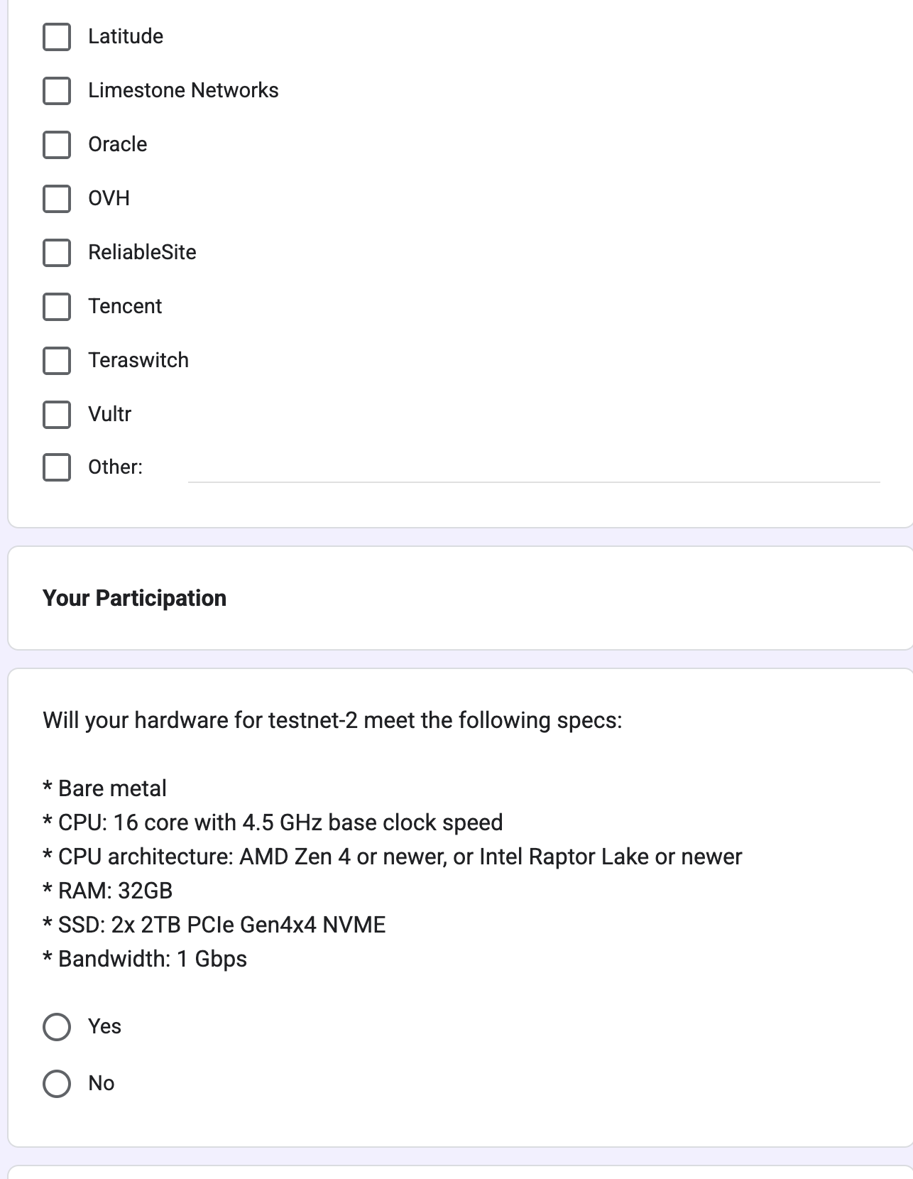 Testnet-2 Form