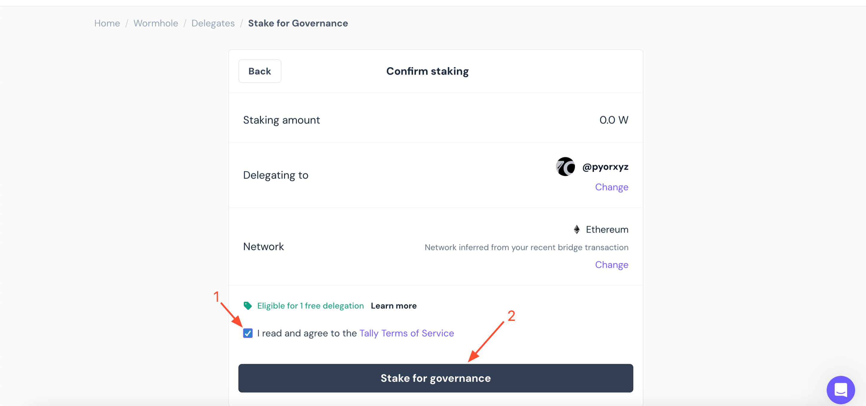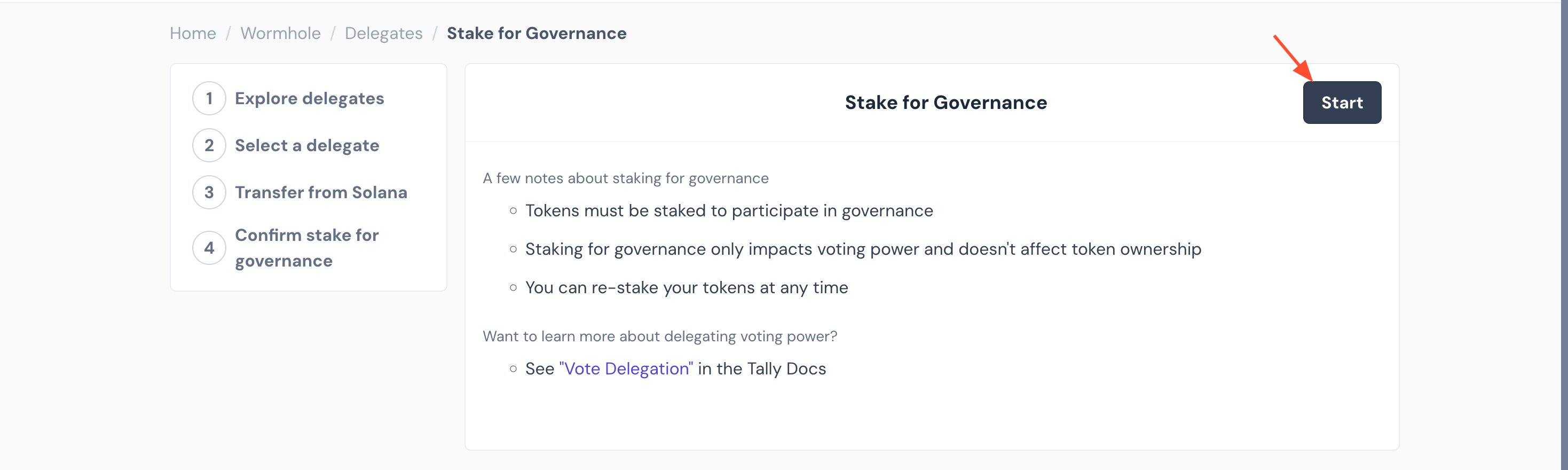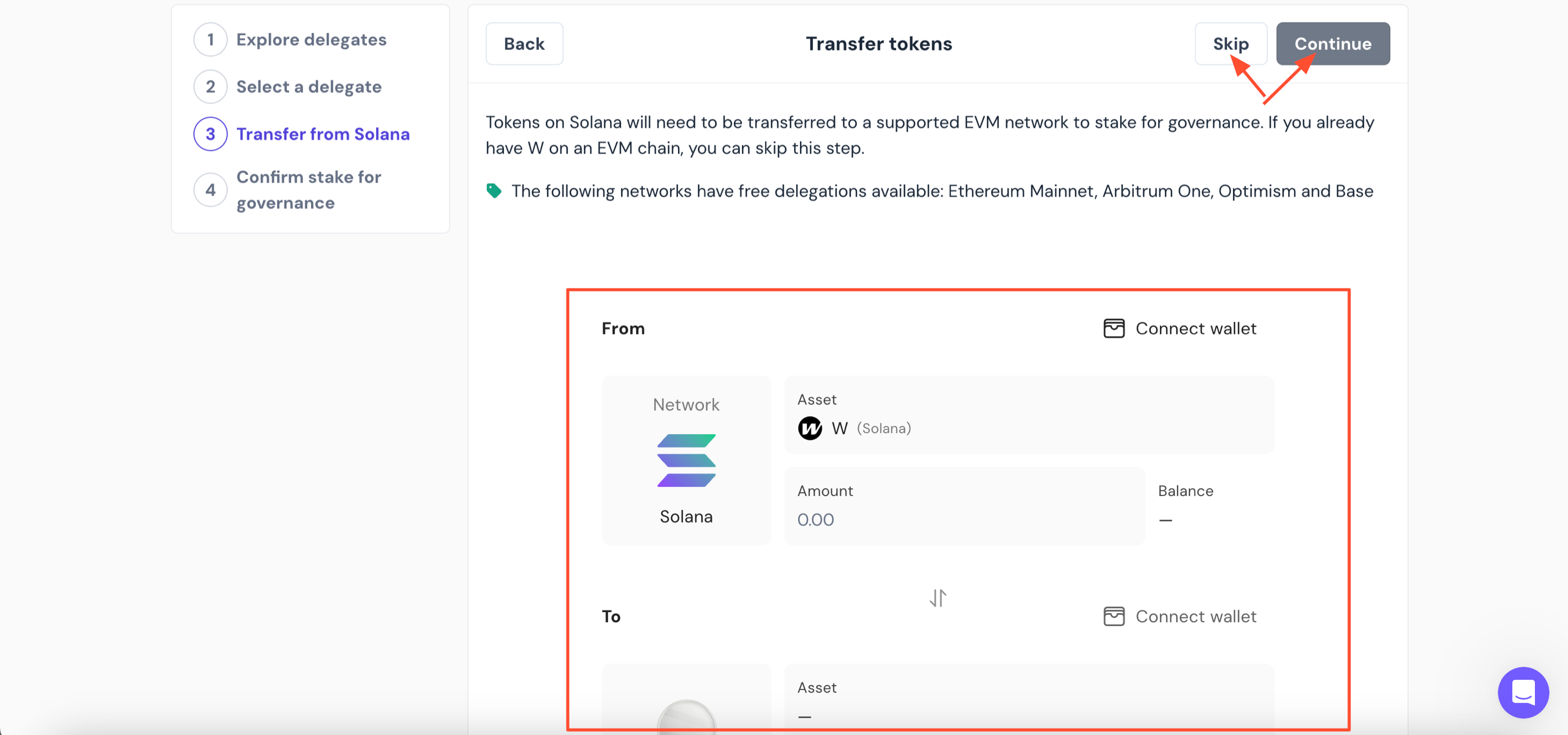 3. Các token trên Solana sẽ cần được chuyển đến một mạng EVM được hỗ trợ để stake cho việc quản trị (hướng dẫn có trên trang). Nếu bạn đã có $W trên một chuỗi EVM, bạn có thể bỏ qua bước này.