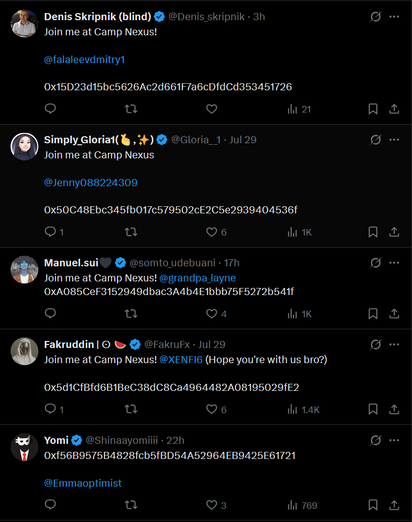 Nexus has launched a new activity called Camp Nexus. We can complete social tasks and earn between 5,000 and 10,000 points. The first badge is currently available. You can get it by writing “I'm Ready for Camp Nexus!” under the tweet and specifying your wallet ID (you can find it in your profile on the testnet website).