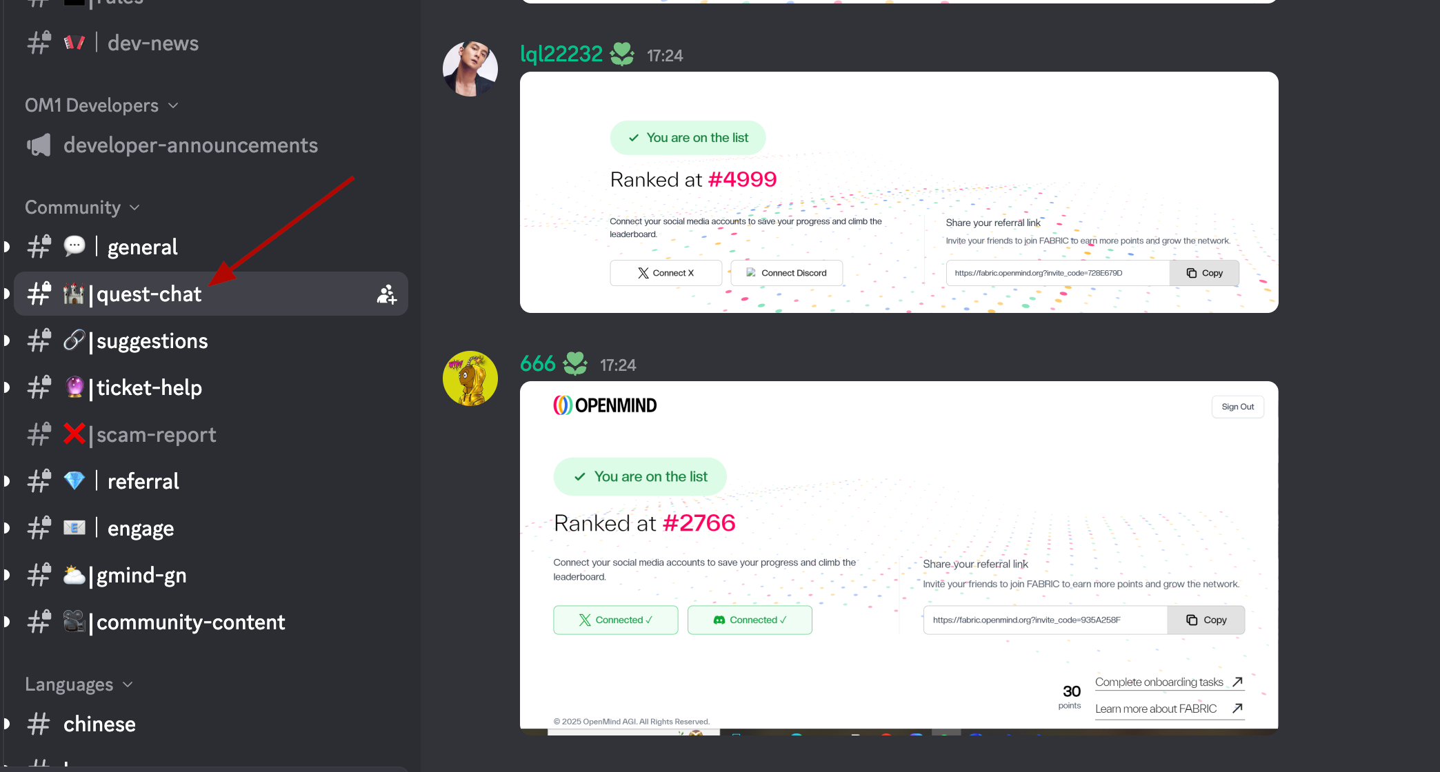 1. Send a screenshot from the Waitlist website to the #quest-chat channel:
