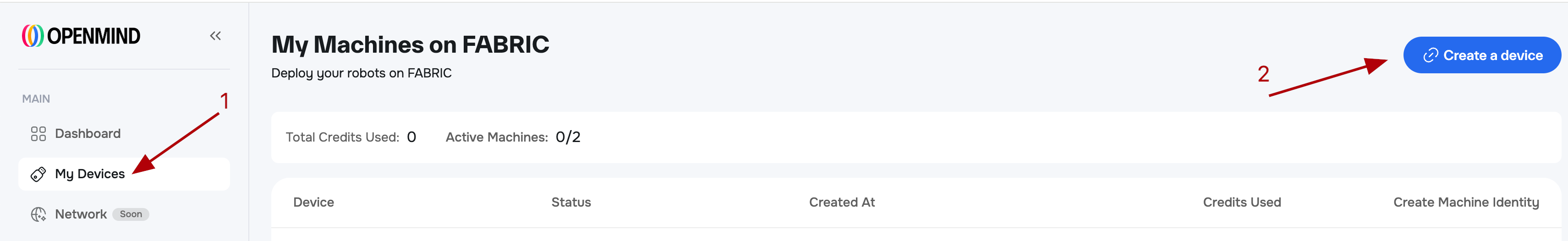 1. Open the My Devices tab and click Create a device. In the window that opens, click Create API key and save the key: