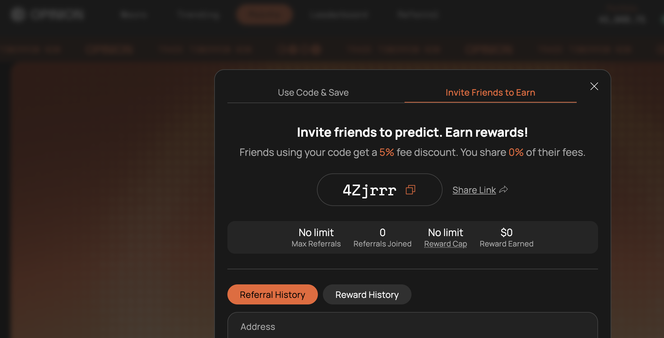 4. Once you have more than $1,000 in trading volume, you can create a referral link and invite friends: