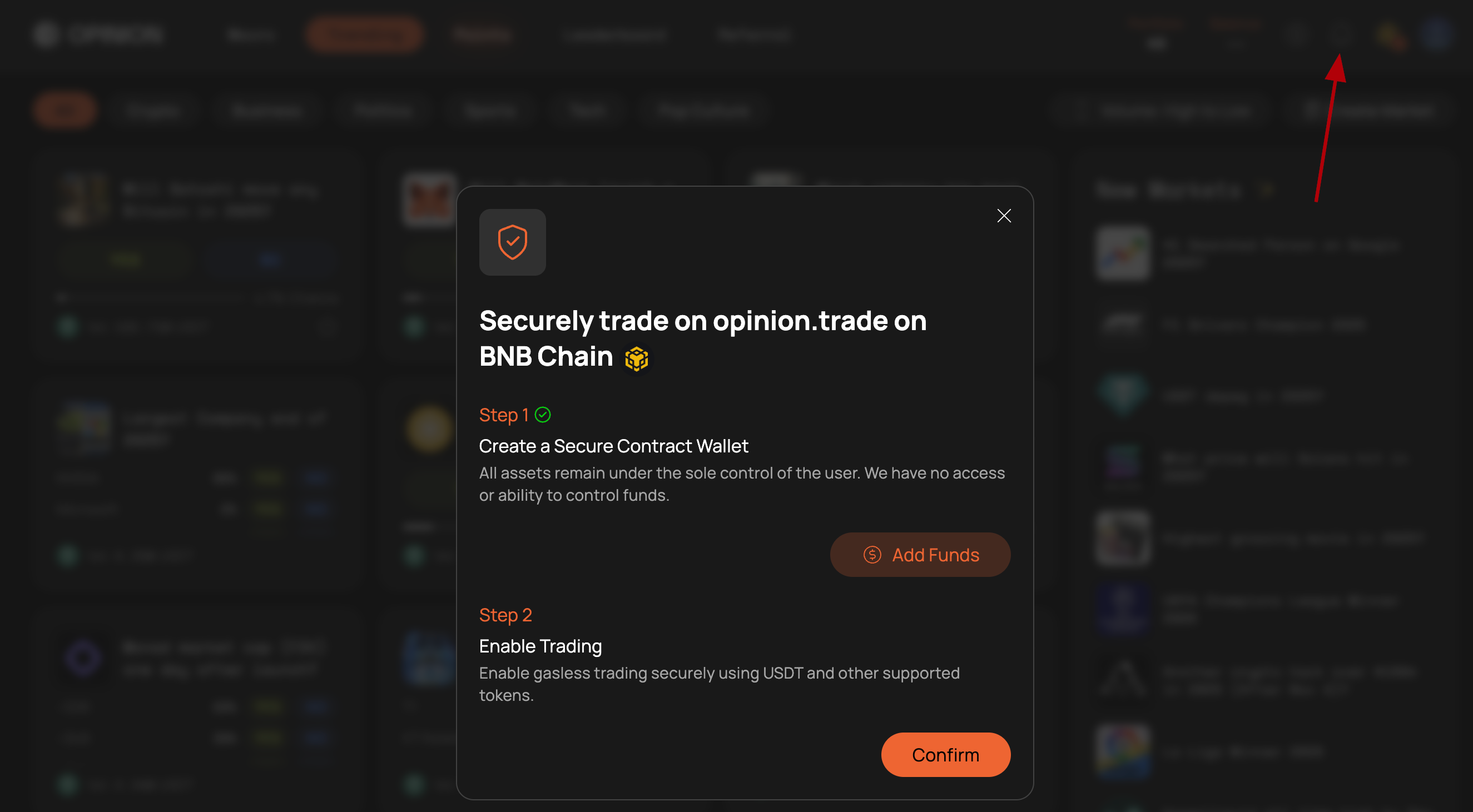 3. Click Add funds, complete 2 steps and get 100 $USDO