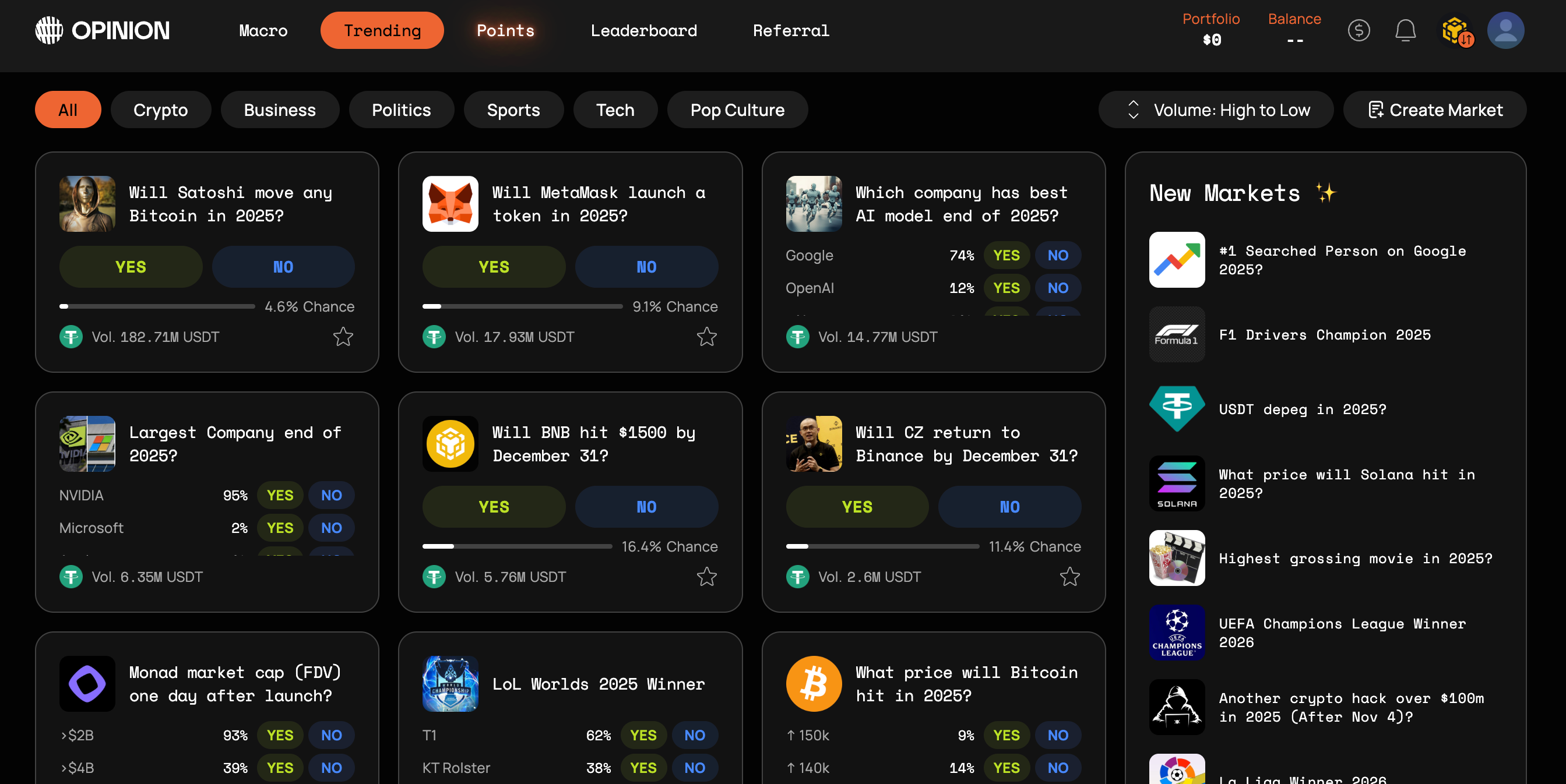 - Prediction market insights or alpha about the Opinion mainnet launch