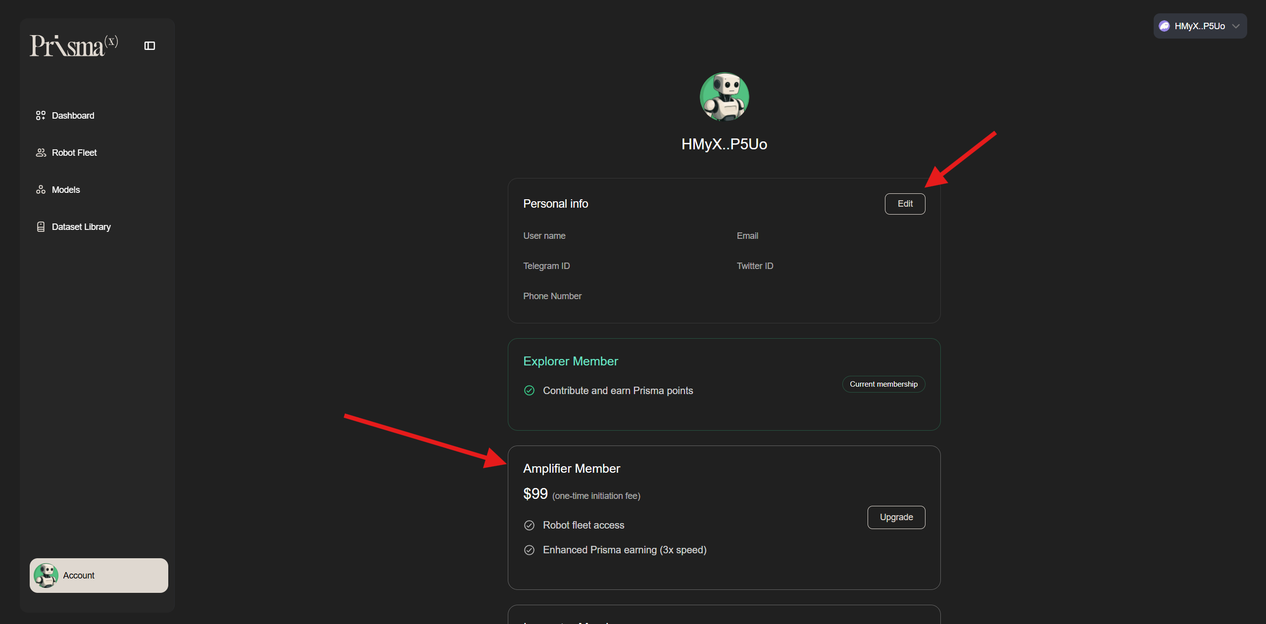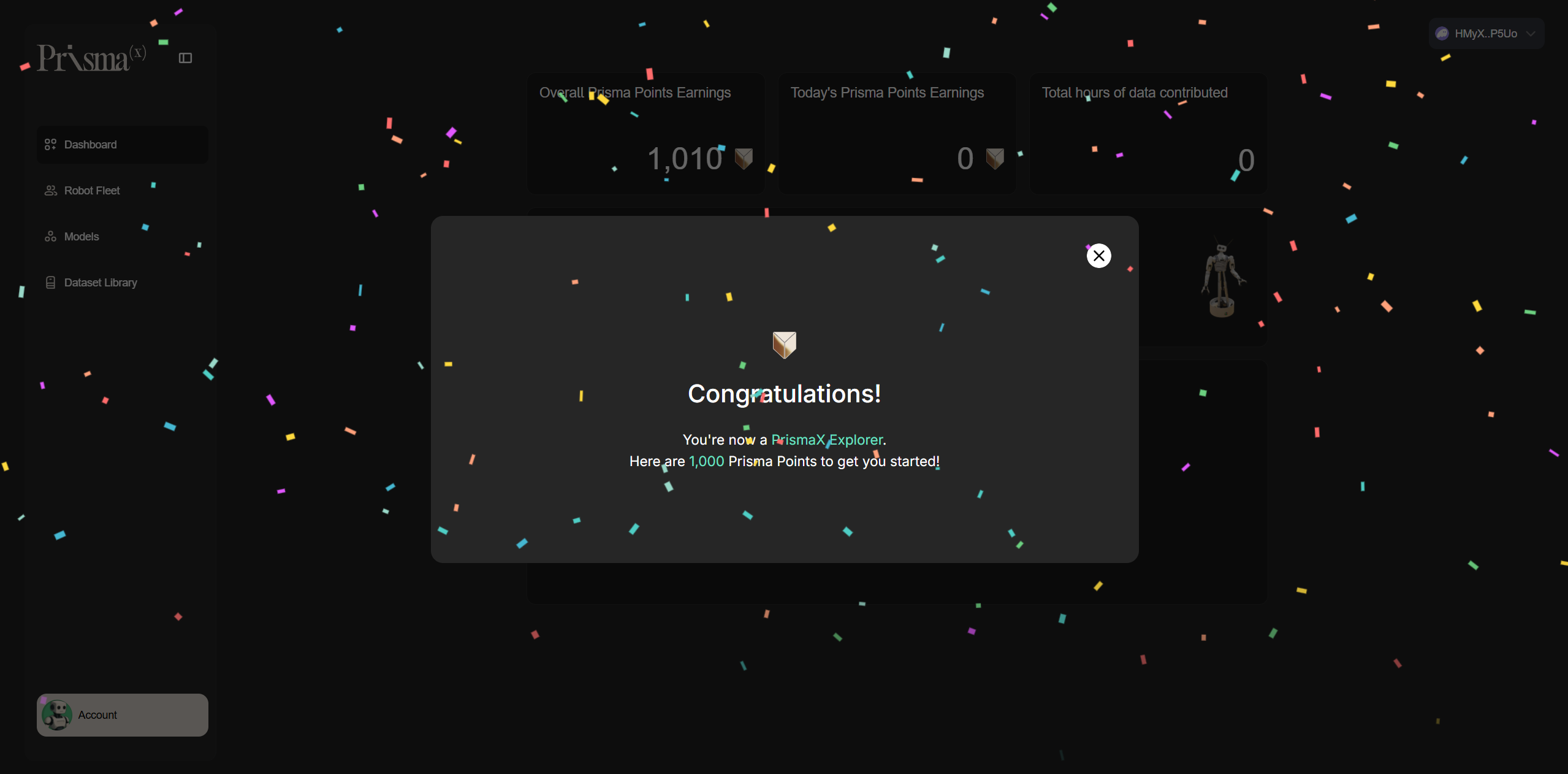 2. Bạn sẽ nhận được 1000 điểm và trạng thái Prisma X Explorer sau lần đăng nhập đầu tiên.