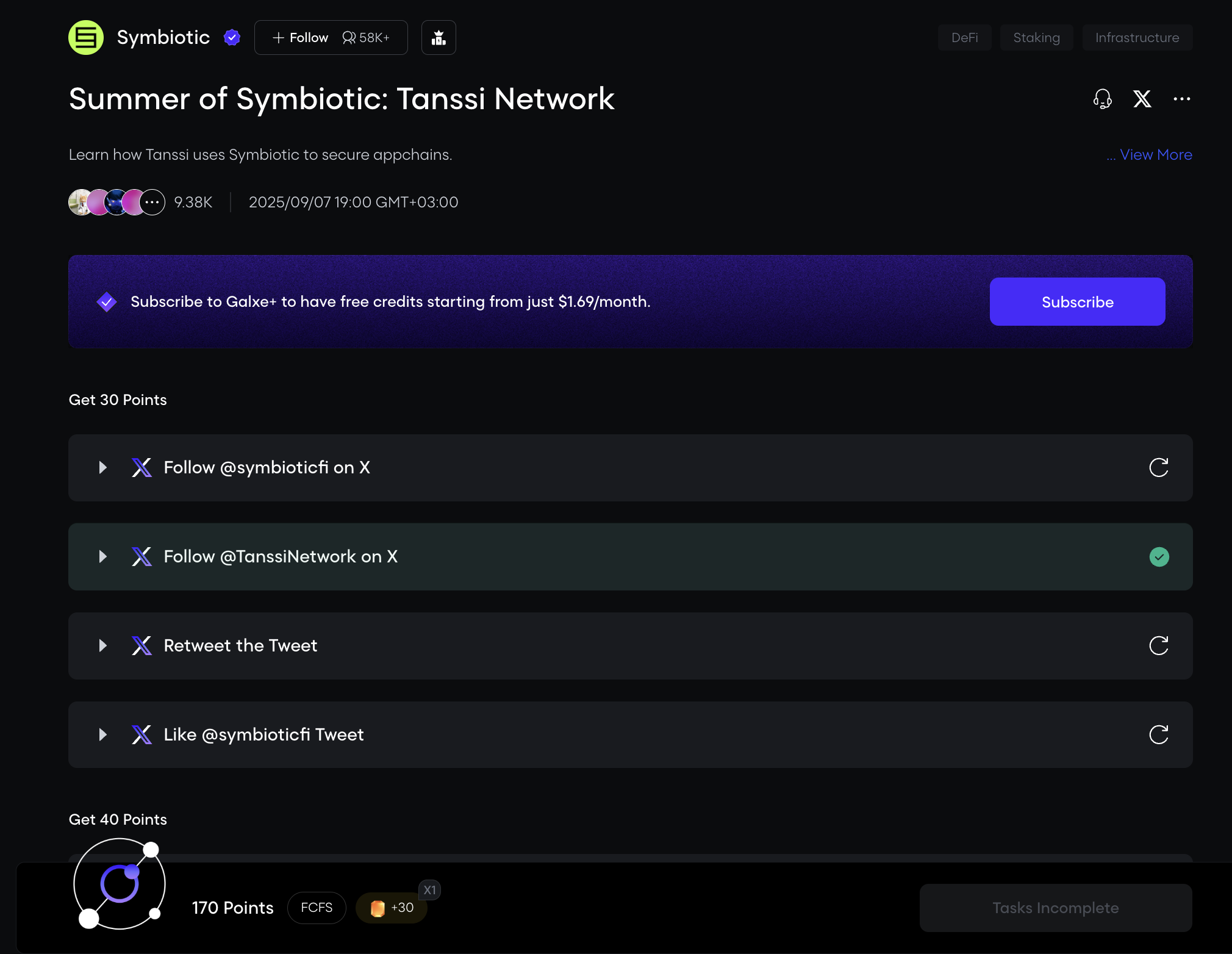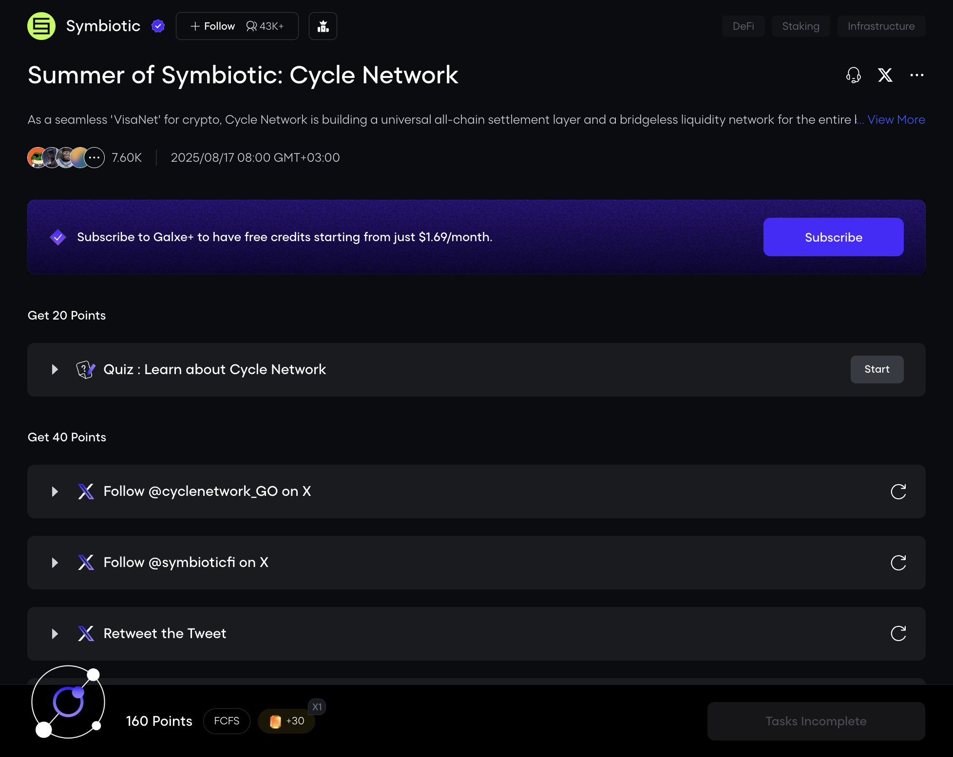 Symbiotic has launched a new campaign on Galxe! We can complete tasks and earn 160 points.