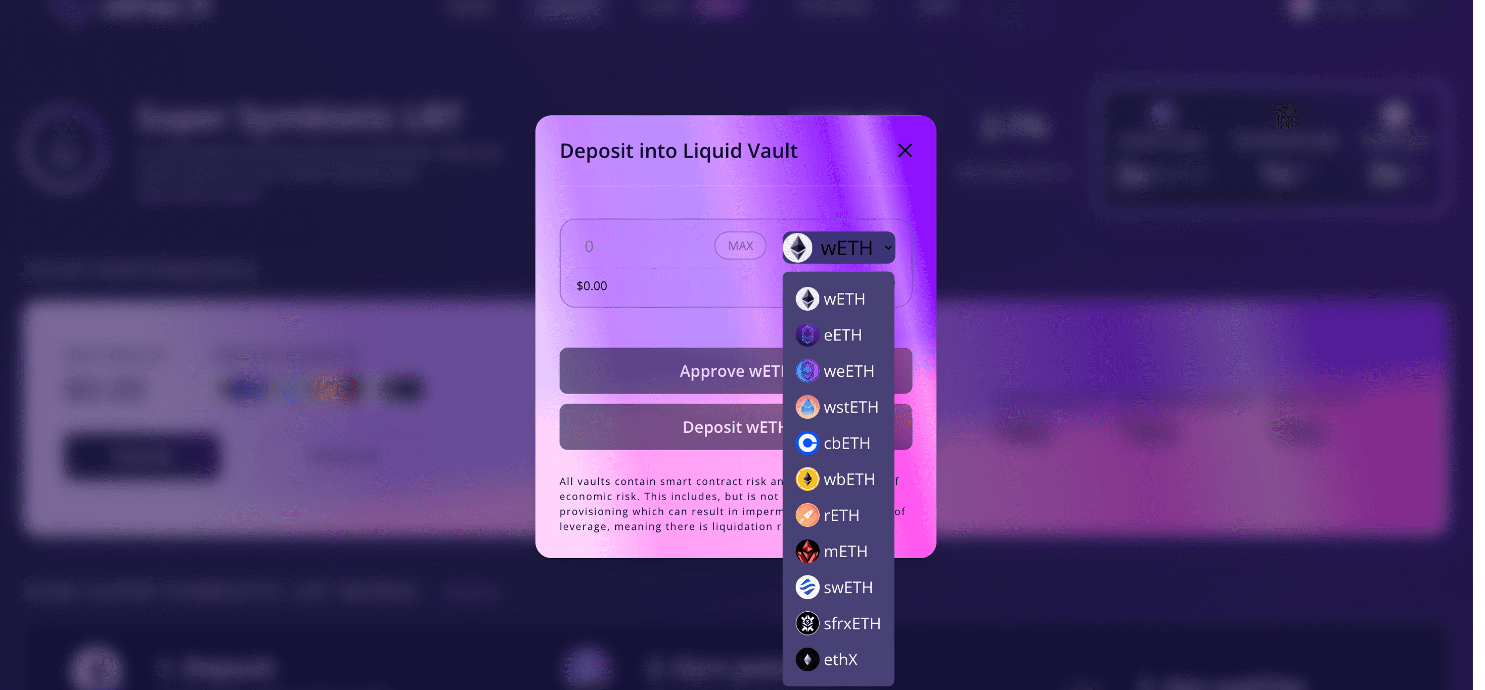Hiện tại có 8 vault có sẵn cho mỗi tài sản với một pool giới hạn.